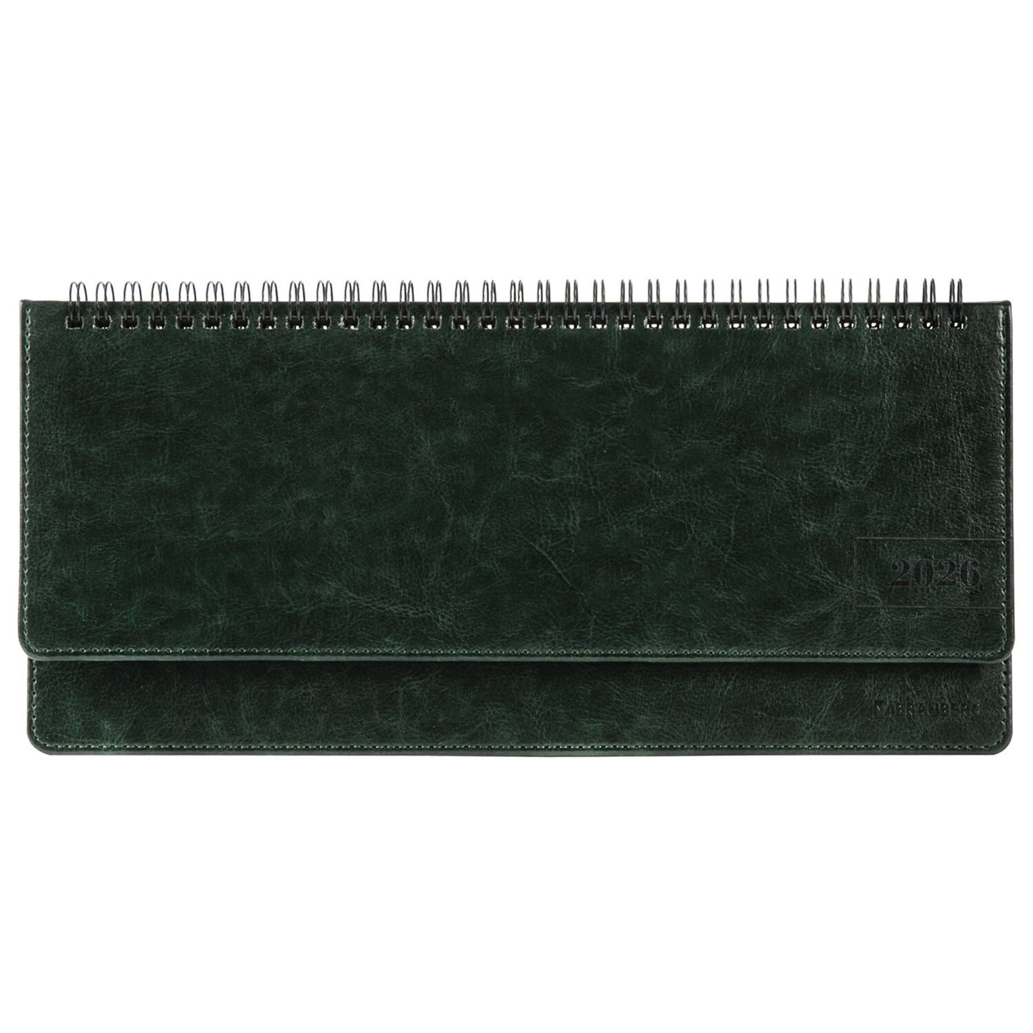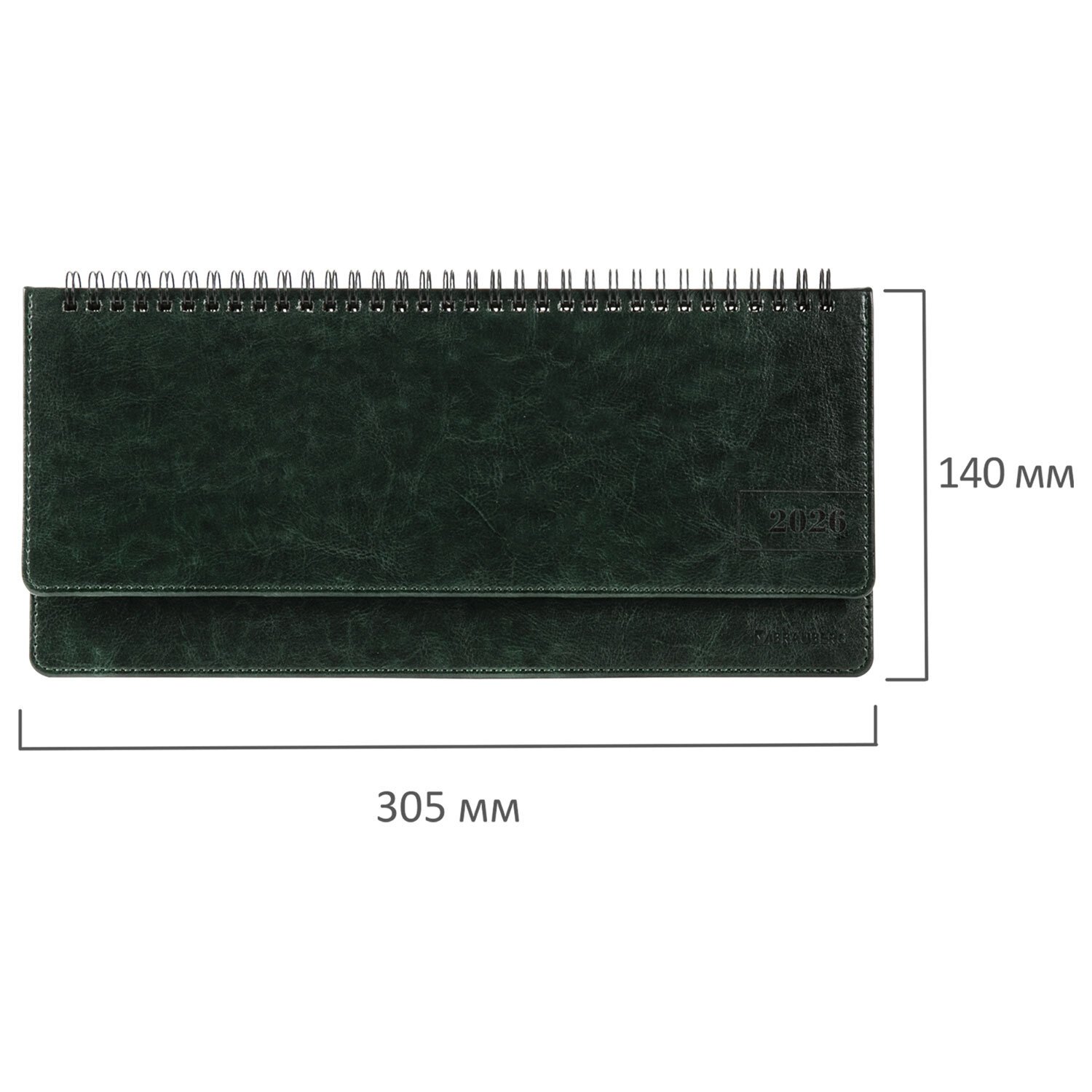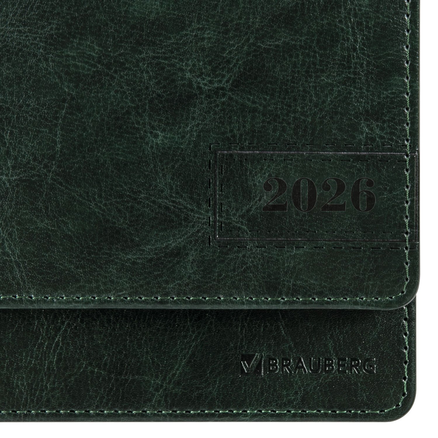 Планинг датированный 2026 305х140мм BRAUBERG Imperial, под кожу, зеленый, 117230