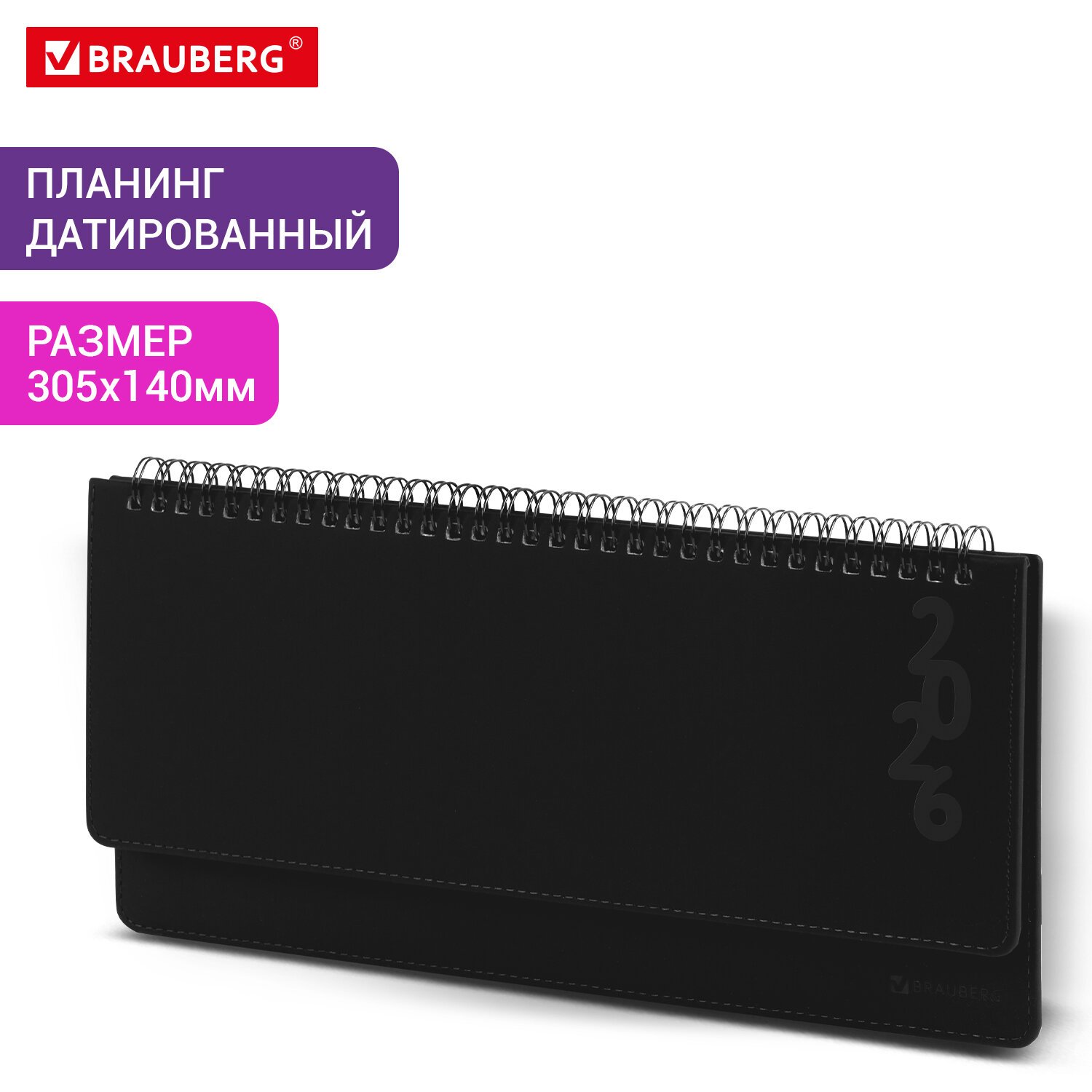 Планинг датированный 2026 305х140мм BRAUBERG Up, под кожу, черный, 117234