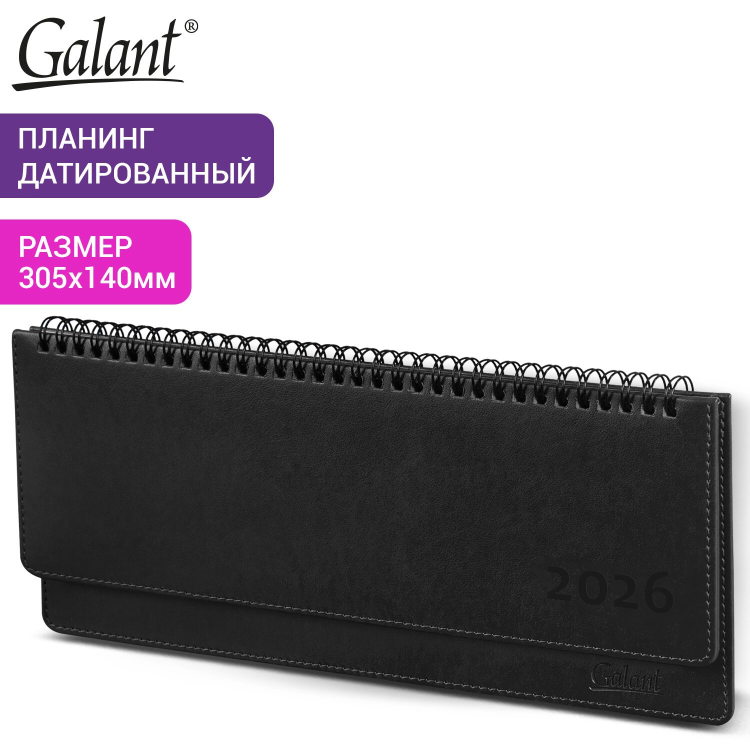 Планинг датированный 2026 305x140 мм GALANT "Ritter", под кожу, черный, 117238