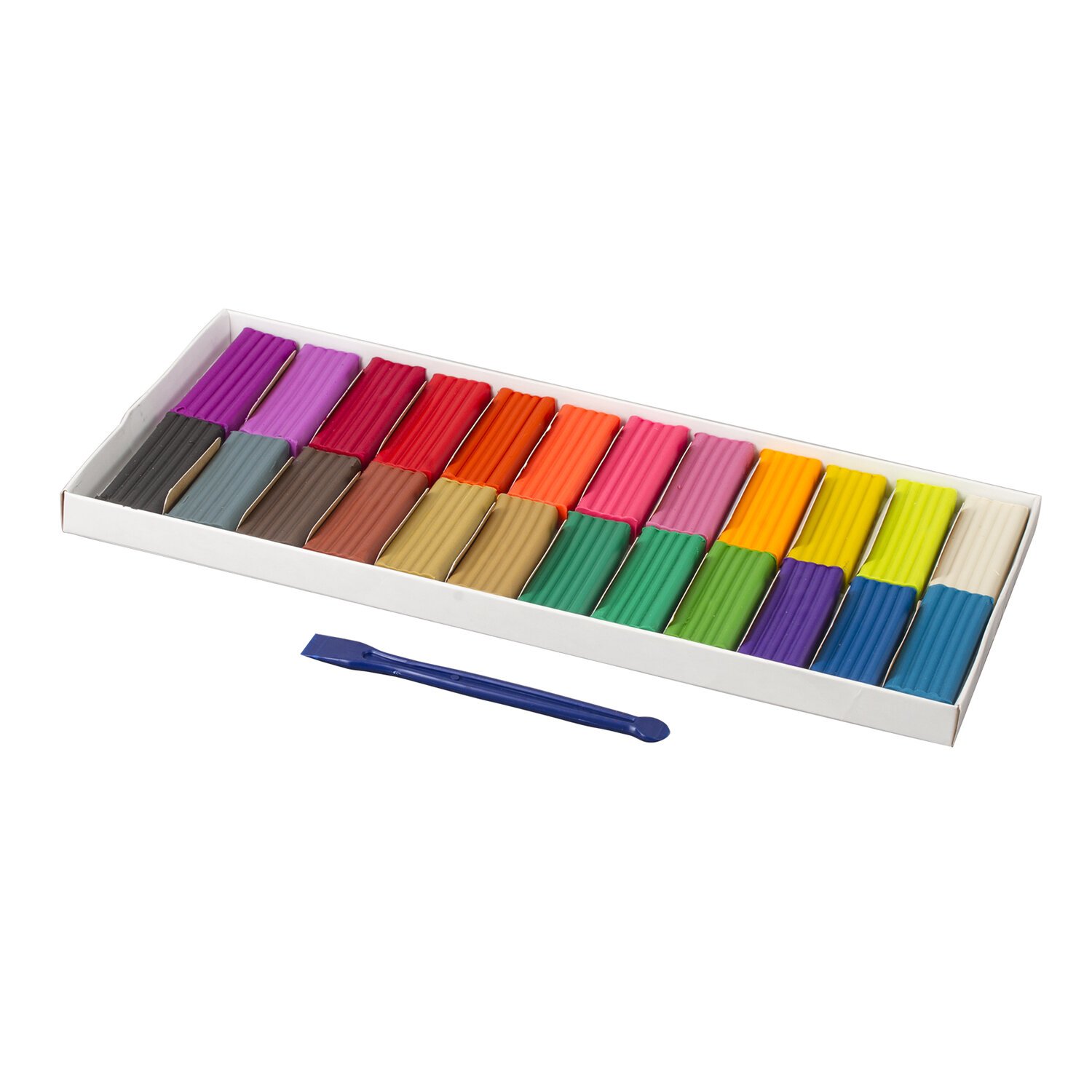 Яркие и насыщенные цвета вызовут у детей исключительно положительные эмоции. Большой набор из 24 цветов поможет ребенку создать поистине уникальную поделку, миниатюрную скульптуру или картину.