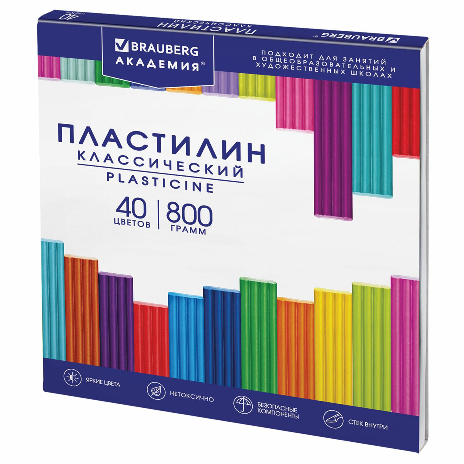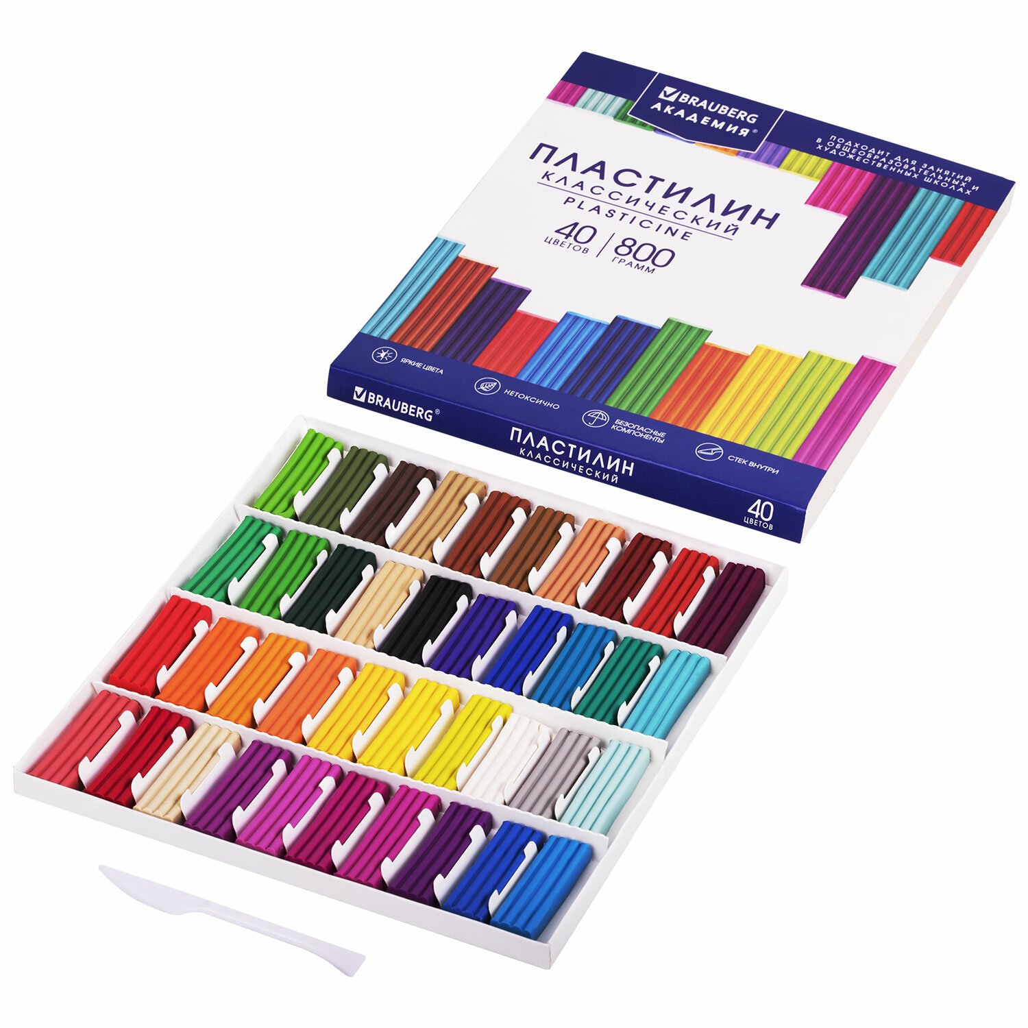 Пластилин классический BRAUBERG "АКАДЕМИЯ КЛАССИЧЕСКАЯ", 40 цветов, 800 г, СТЕК, ВЫСШЕЕ КАЧЕСТВО, 106512