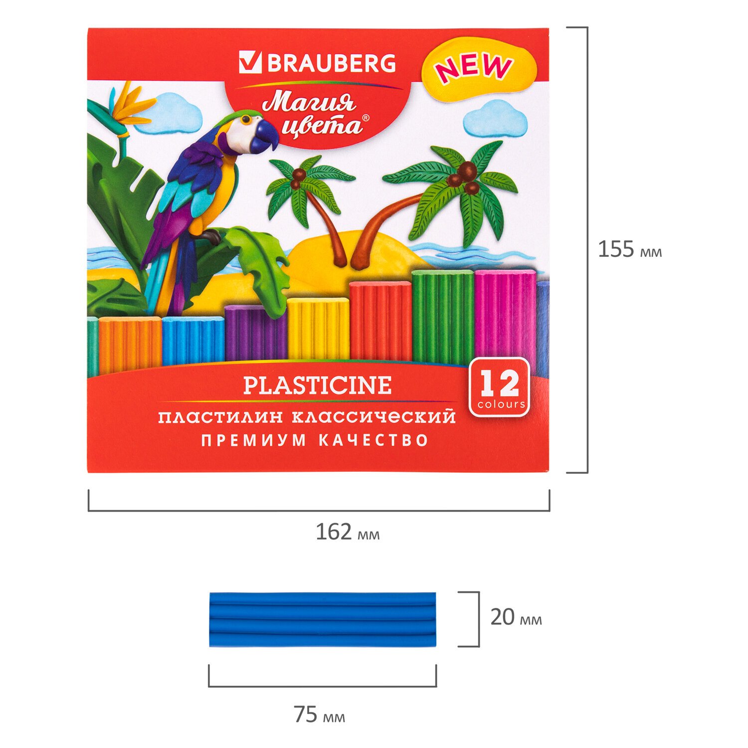 Пластилин классический BRAUBERG "МАГИЯ ЦВЕТА NEW", 12 цветов, 240 г, стек, ВЫСШЕЕ КАЧЕСТВО, 106426