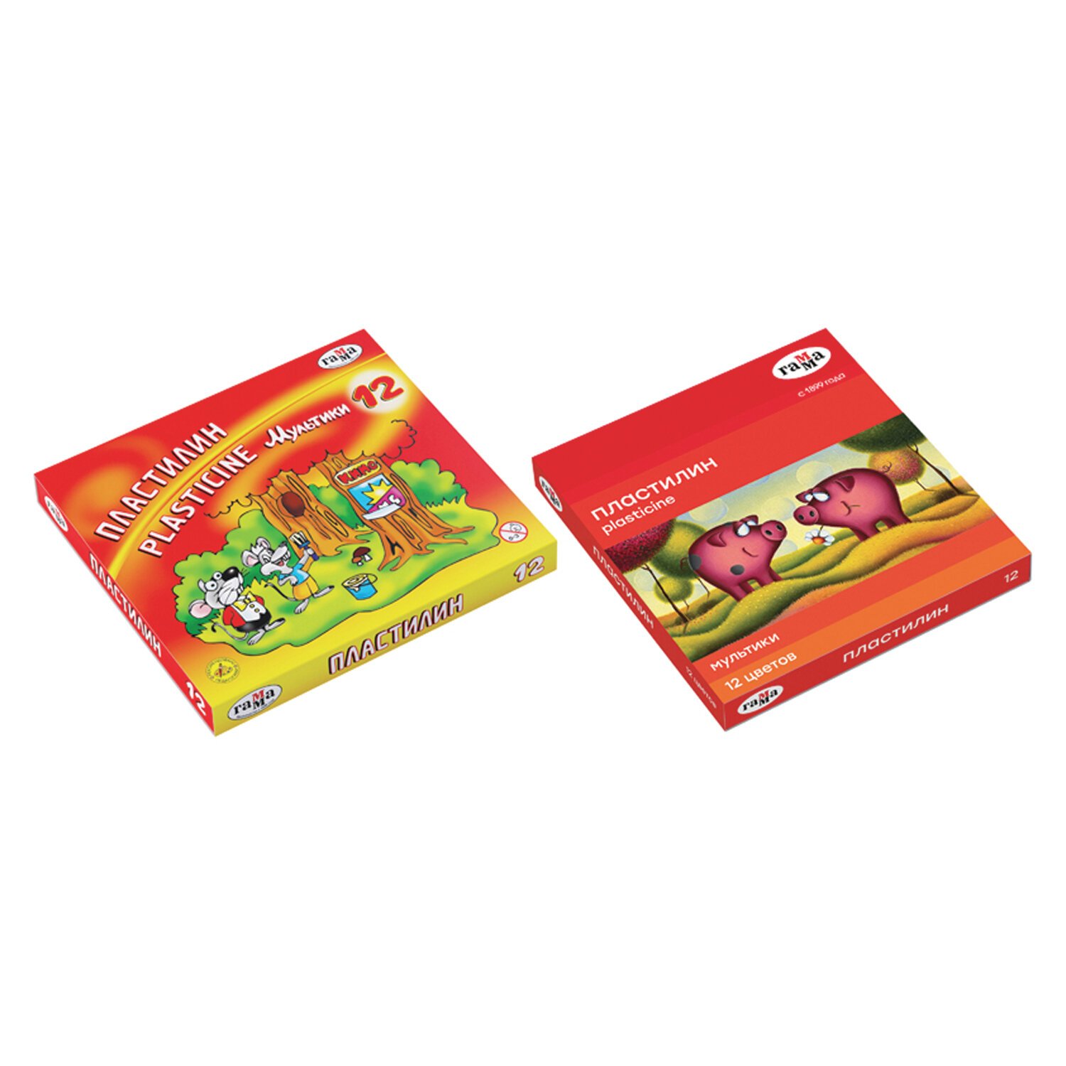 Пластилин классический ГАММА "Мультики", 12 цветов, 240 г, со стеком, картонная упаковка, 280018/281018