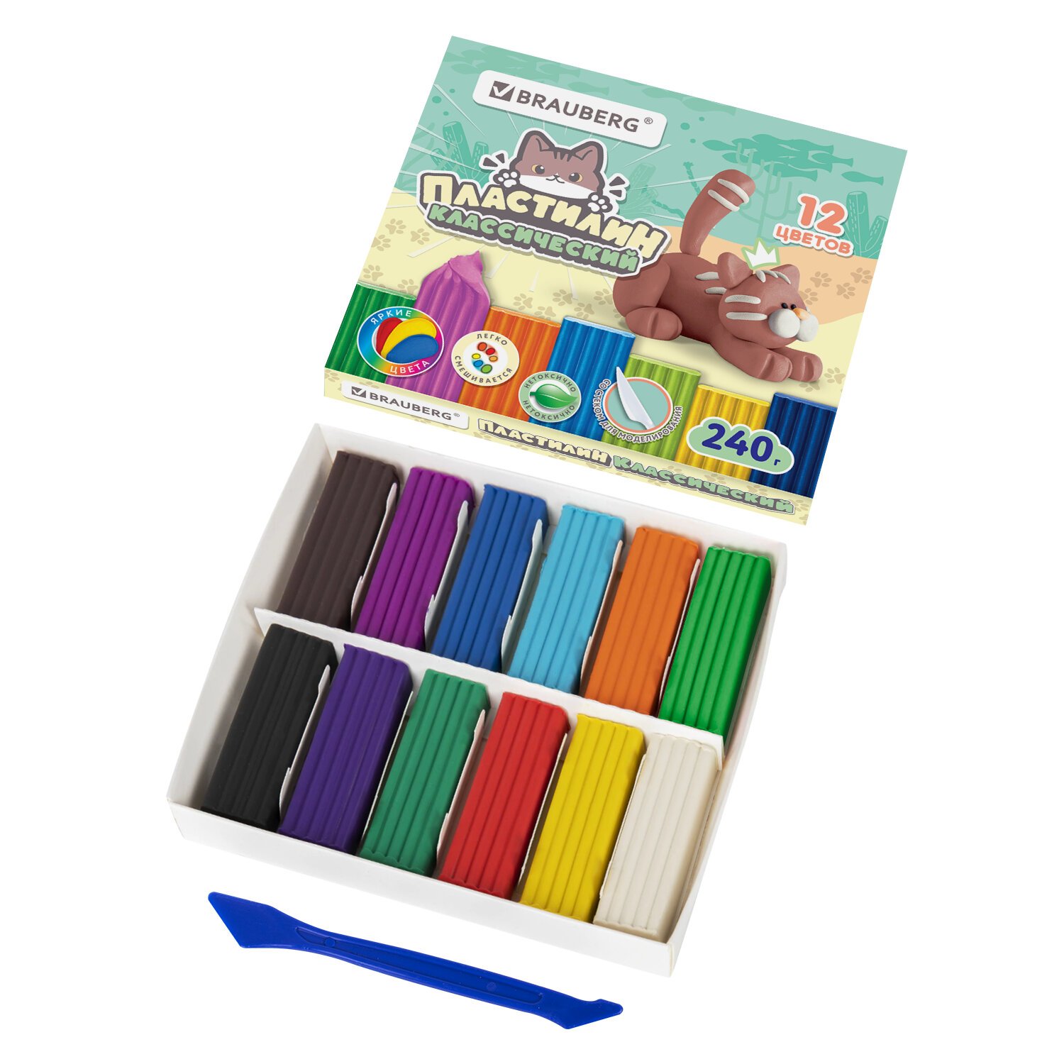 Пластилин классический BRAUBERG KIDS, 12 цветов, 240 г, стек, ВЫСШЕЕ КАЧЕСТВО, 106436