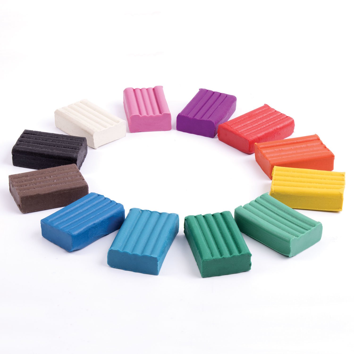 В составе набора 12 ярких цветов: белый, красный, розовый, сиреневый, синий, голубой, желтый, оранжевый, желто-зеленый, зеленый, коричневый, черный. Масса набора - 120 г.