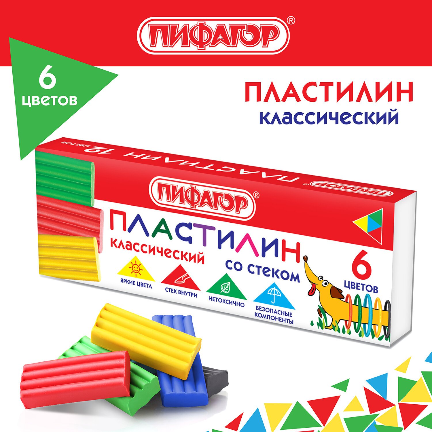 Пластилин классический ПИФАГОР "ЭНИКИ-БЕНИКИ СУПЕР", 6 цветов, 120 г, стек, 106428