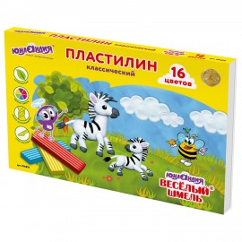 Пластилин классический ЮНЛАНДИЯ "ВЕСЁЛЫЙ ШМЕЛЬ", 16 цветов, 240 г, СО СТЕКОМ, 104810