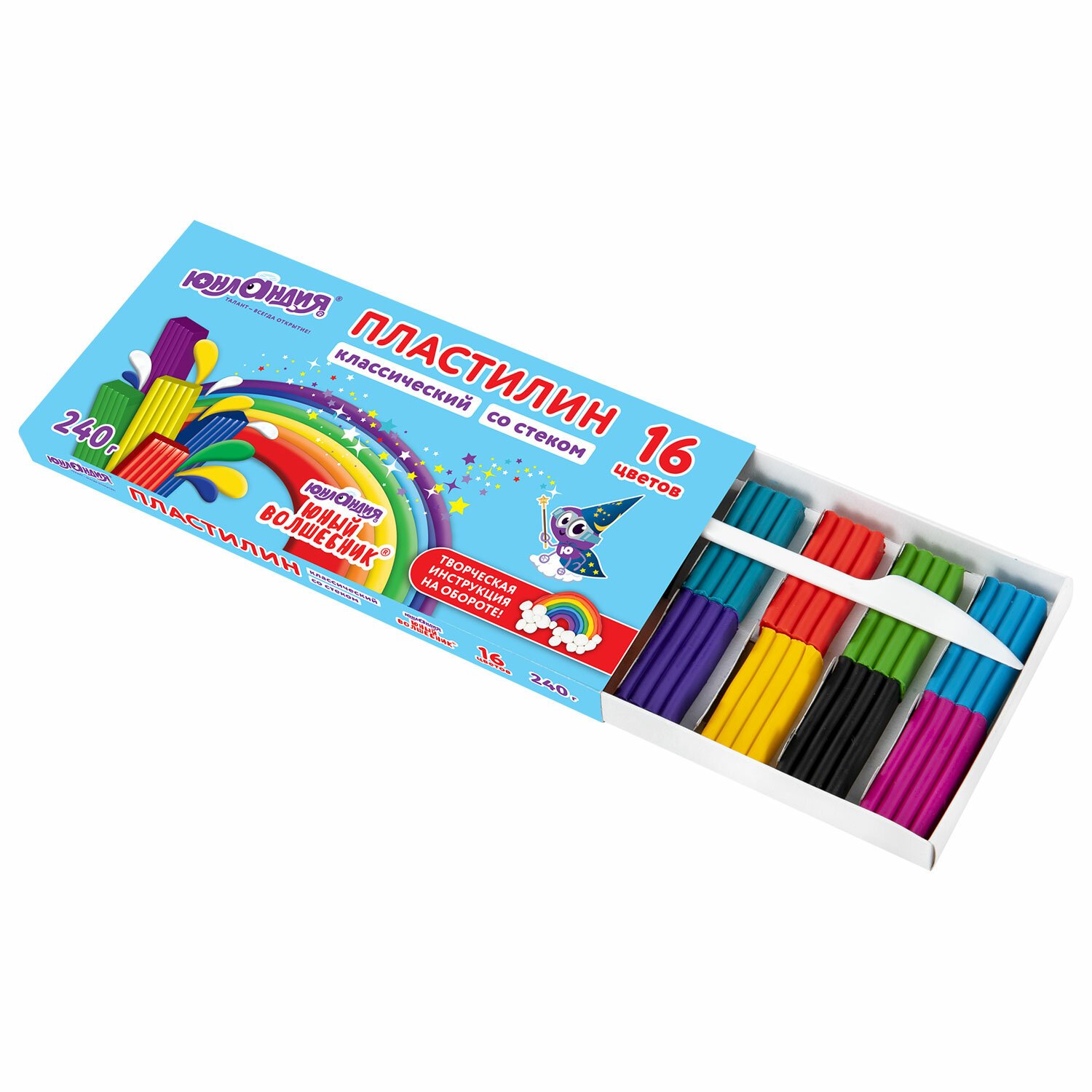 Пластилин классический ЮНЛАНДИЯ "ЮНЫЙ ВОЛШЕБНИК", 16 цветов, 240 грамм, СО СТЕКОМ, ВЫСШЕЕ КАЧЕСТВО, 106430