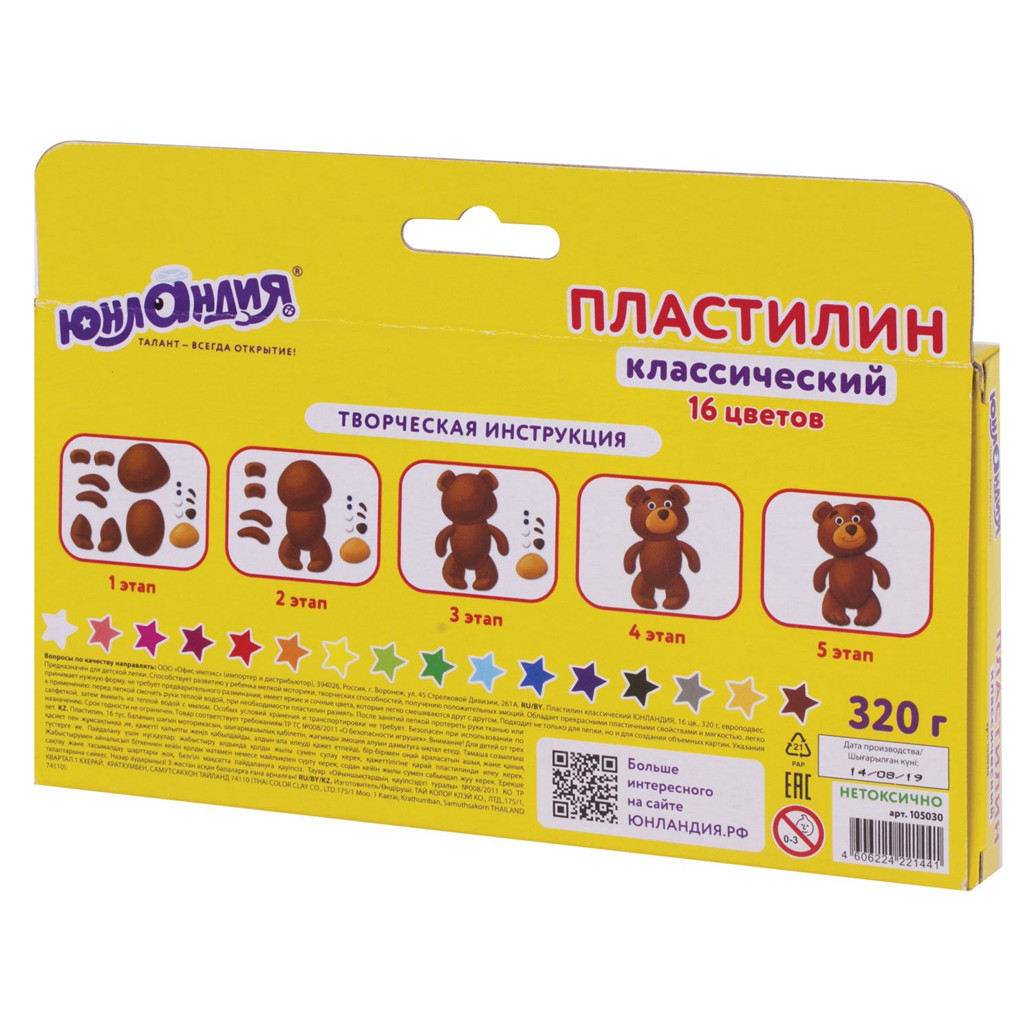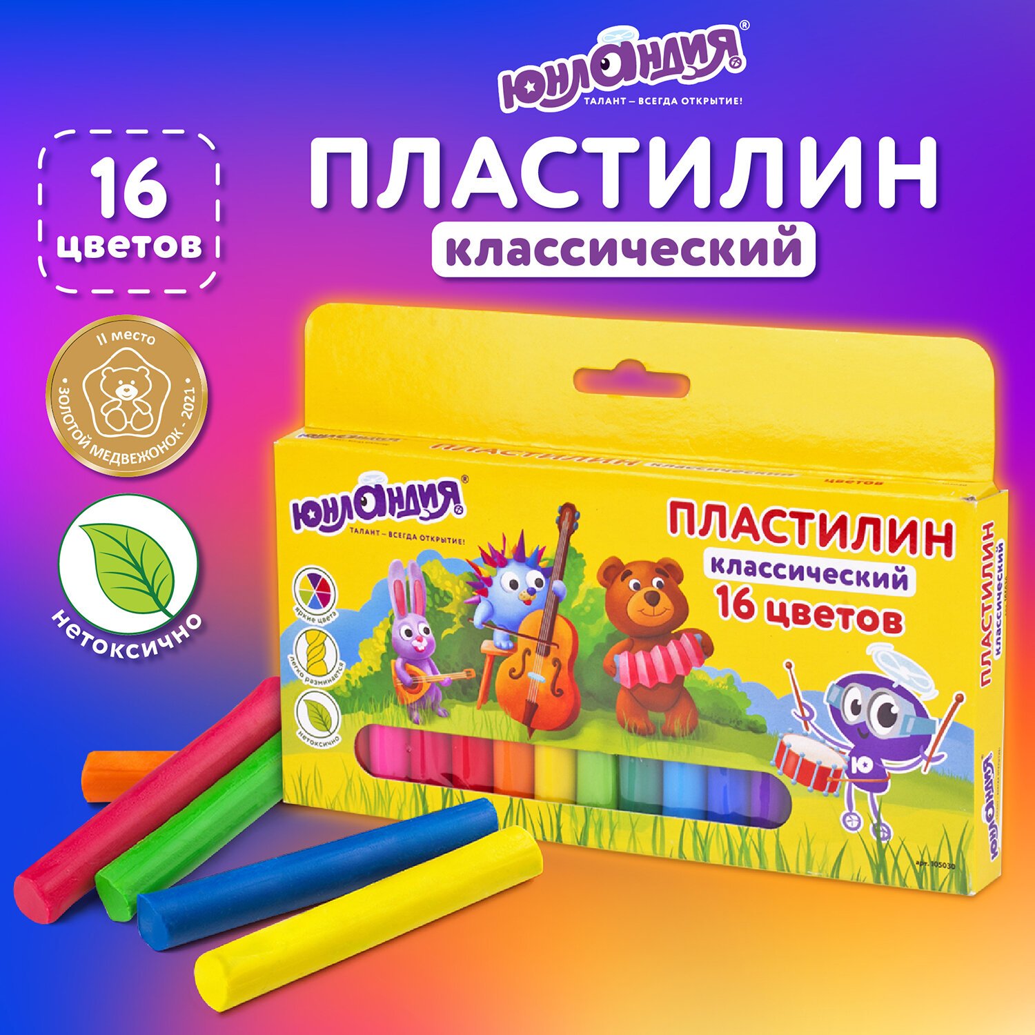 Пластилин классический ЮНЛАНДИЯ "ЮНЛАНДИК-МУЗЫКАНТ", 16 цветов, 320 г, ВЫСШЕЕ КАЧЕСТВО, 105030