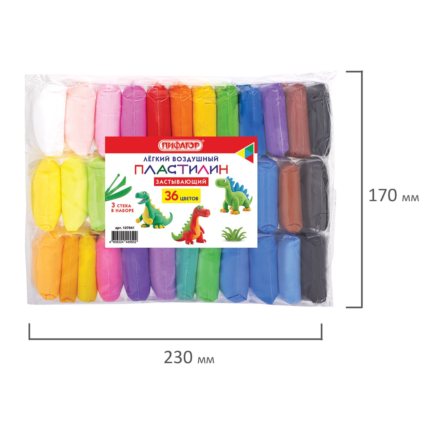 Пластилин лёгкий воздушный застывающий 36 цветов, 310 г, 3 стека, ПИФАГОР, 107041