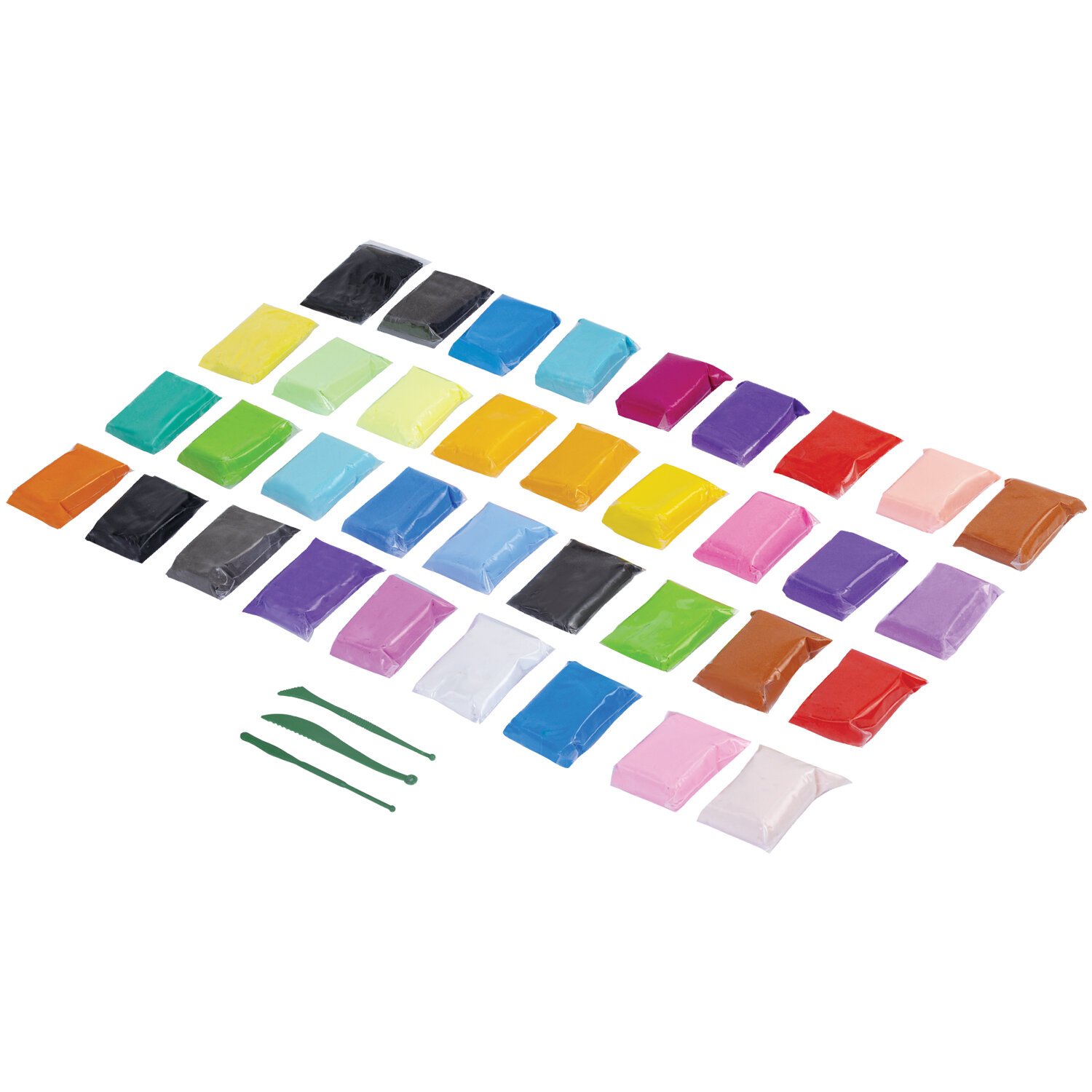 Масса набора - 310 г. Набор комплектуется 3 стеками. В наборе 36 брусков по 8 г различных цветов: белый, телесный, светло-розовый, персиковый, красный, оранжевый, желтый, красновато-коричневый, черный, темно-фиолетовый, небесно-голубой, травяной зеленый, неоновый зеленый, зеленое яблоко, изумрудно-голубой, королевский синий, темно-серый, кофейный, красный лотос, неоновый фиолетовый, лимонно-желтый, золотой, мандариновый, розовый, зеленый, светло-изумрудно-голубой, светло-синий, светло-фиолетовый, светло-серый, светло-кофейный, светло-красный, светло-оранжевый, неоновый желтый, ярко-желтый, светло-желтый, светло-зеленый.