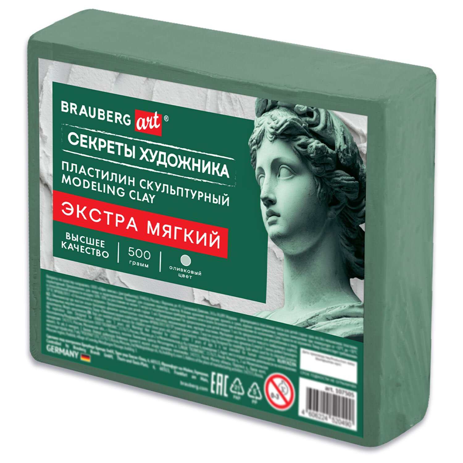 Пластилин скульптурный ЭКСТРА МЯГКИЙ ОЛИВКОВЫЙ "Секреты художника", 0,5 кг, BRAUBERG ART, 107505
