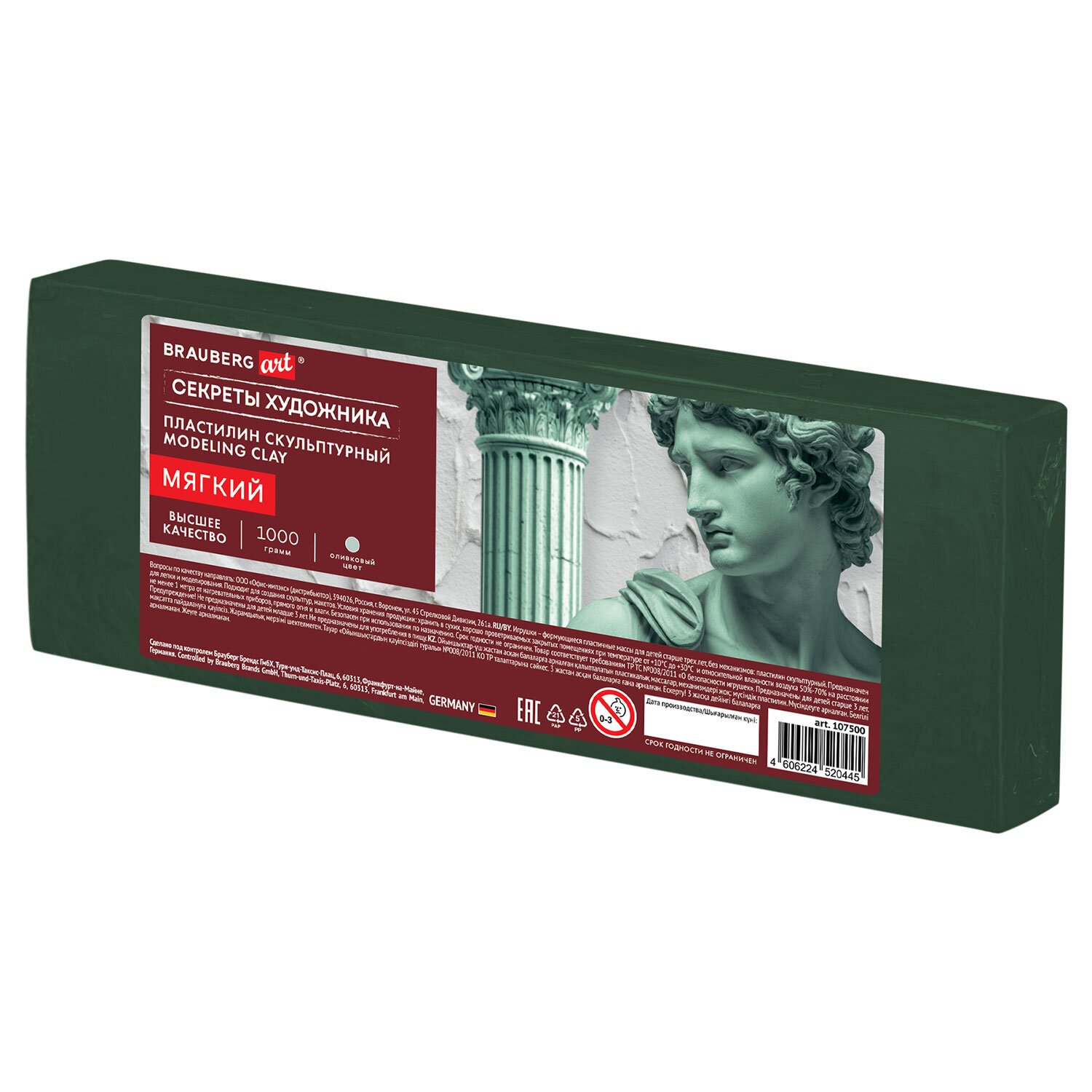 Пластилин скульптурный МЯГКИЙ ОЛИВКОВЫЙ "Секреты художника", 1 кг, BRAUBERG ART, 107500