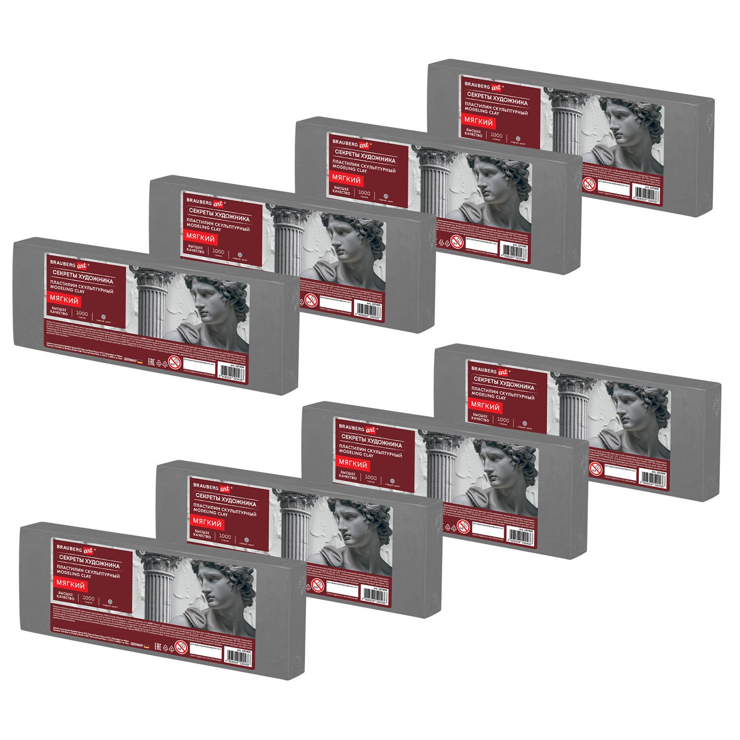 Пластилин скульптурный мягкий серый BRAUBERG ART "Секреты художника", 8 кг, 881171