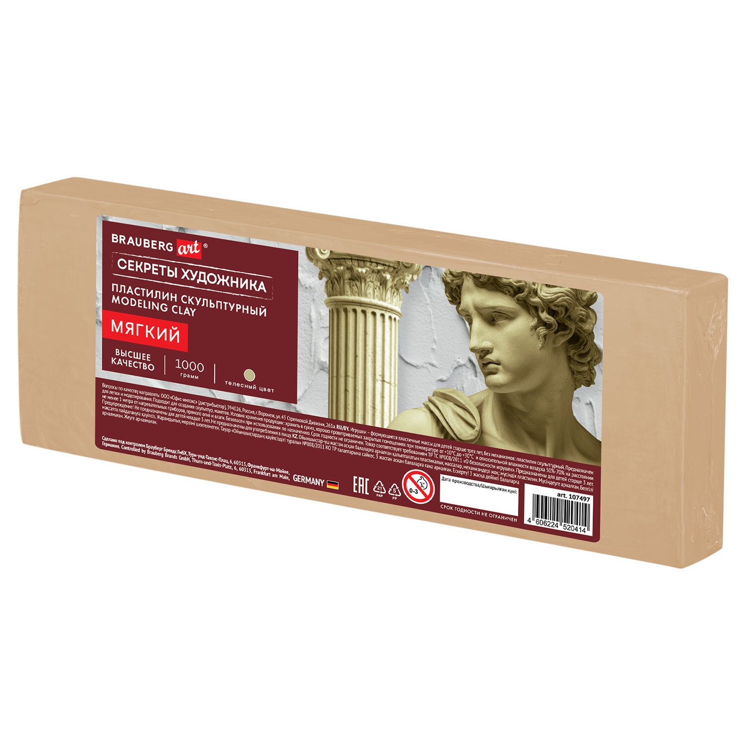 Пластилин скульптурный МЯГКИЙ ТЕЛЕСНЫЙ "Секреты художника", 1 кг, BRAUBERG ART, 107497