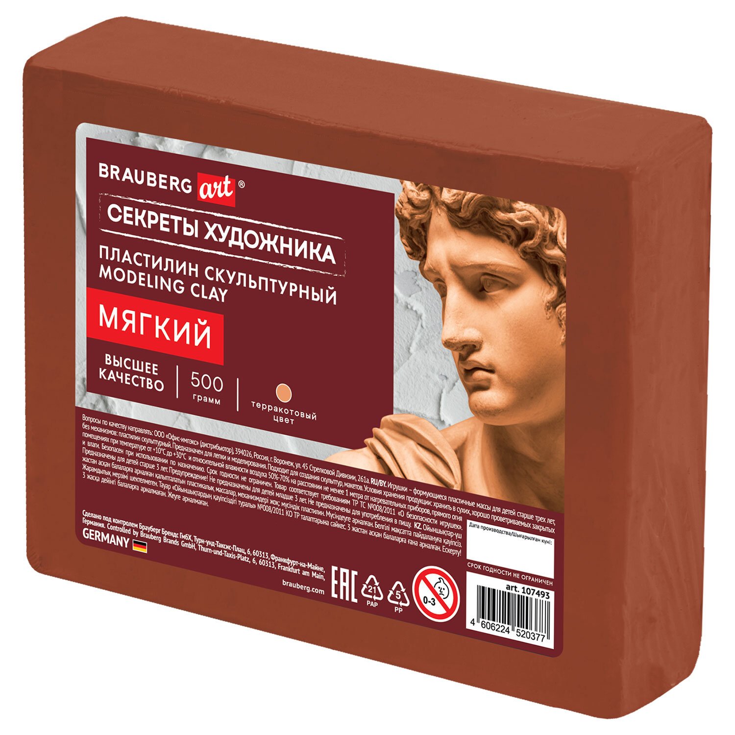 Пластилин скульптурный МЯГКИЙ ТЕРРАКОТОВЫЙ "Секреты художника", 0,5 кг, BRAUBERG ART, 107493