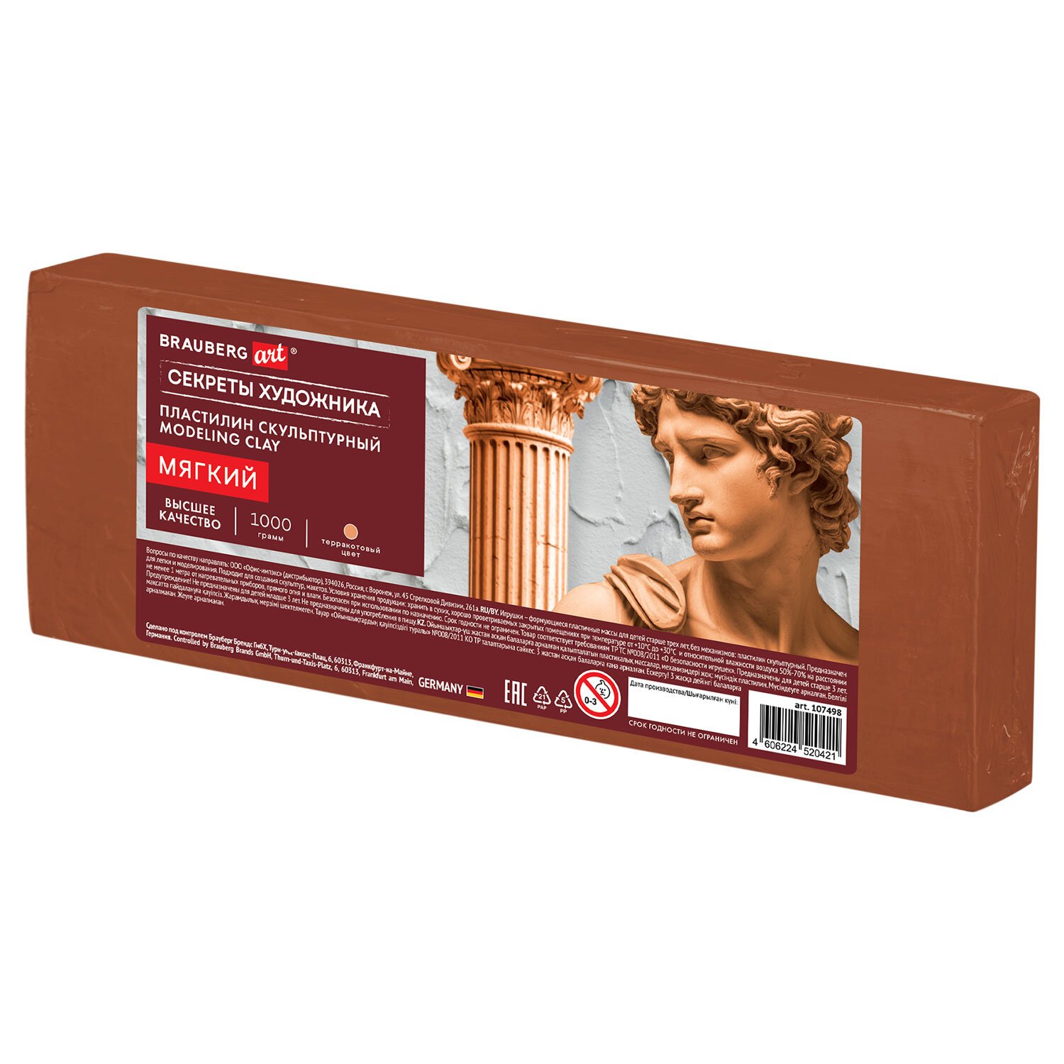 Пластилин скульптурный МЯГКИЙ ТЕРРАКОТОВЫЙ "Секреты художника", 1 кг, BRAUBERG ART, 107498