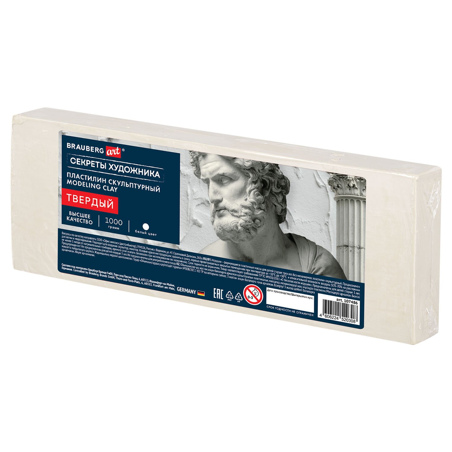 Пластилин скульптурный ТВЕРДЫЙ БЕЛЫЙ "Секреты художника", 1 кг, BRAUBERG ART, 107486