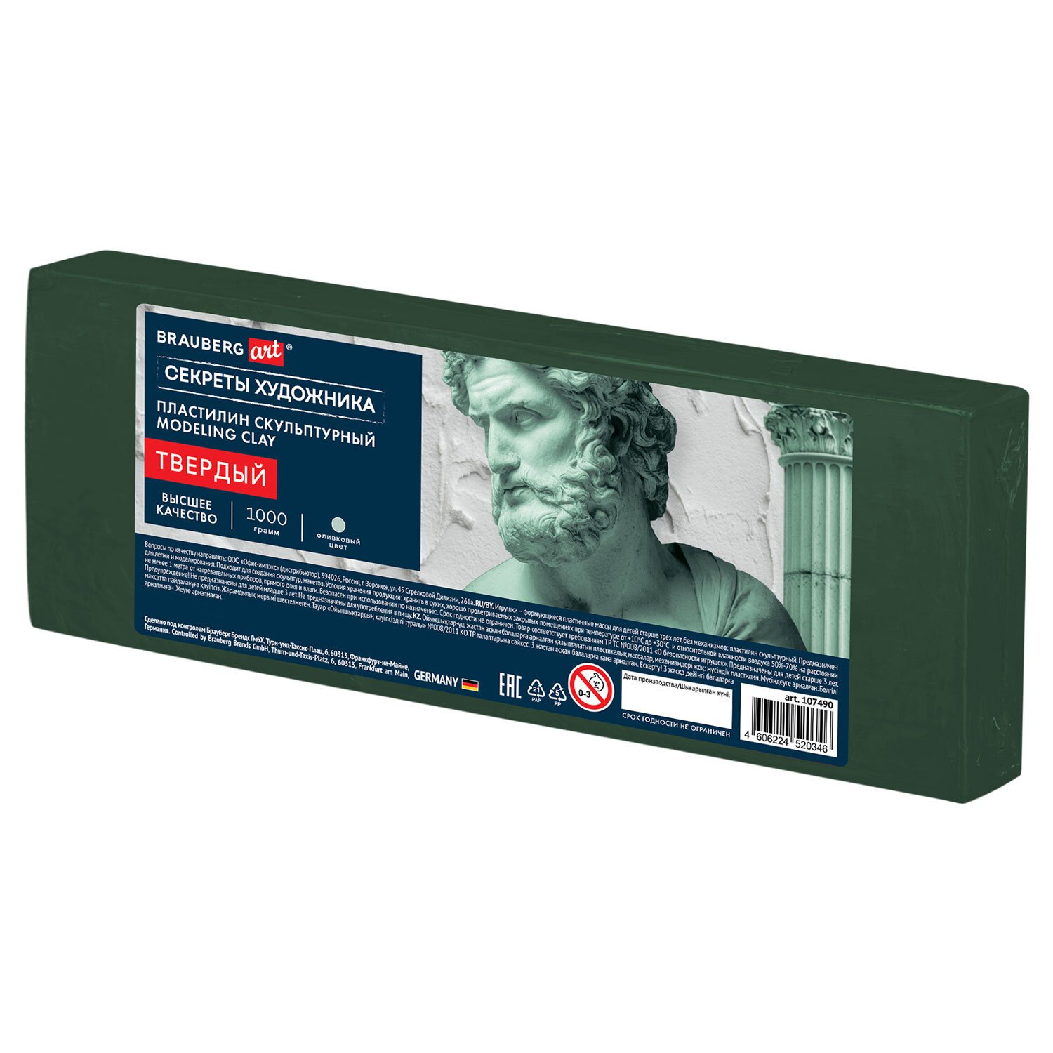 Пластилин скульптурный ТВЕРДЫЙ ОЛИВКОВЫЙ "Секреты художника", 1 кг, BRAUBERG ART, 107490