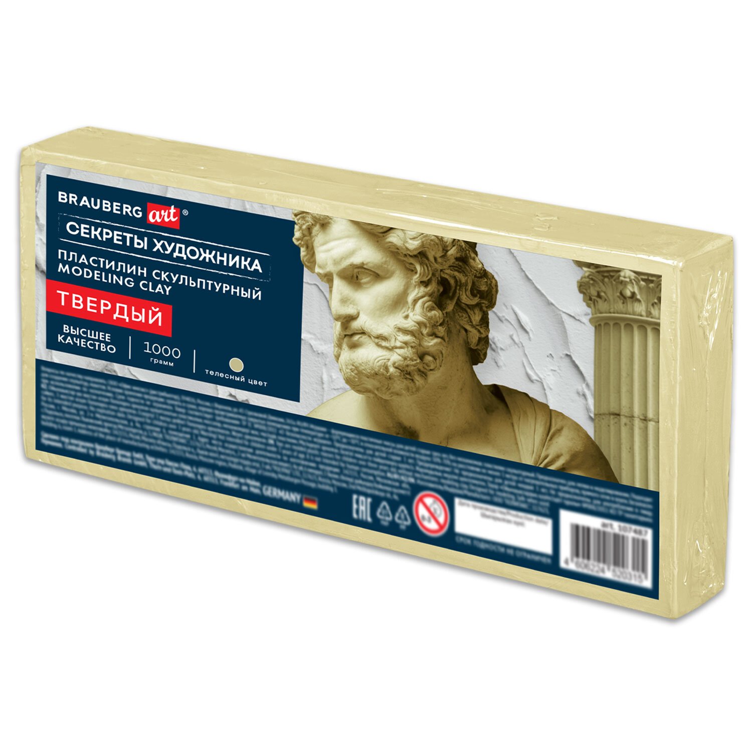 Пластилин скульптурный ТВЕРДЫЙ ТЕЛЕСНЫЙ "Секреты художника", 1 кг, BRAUBERG ART, 107487