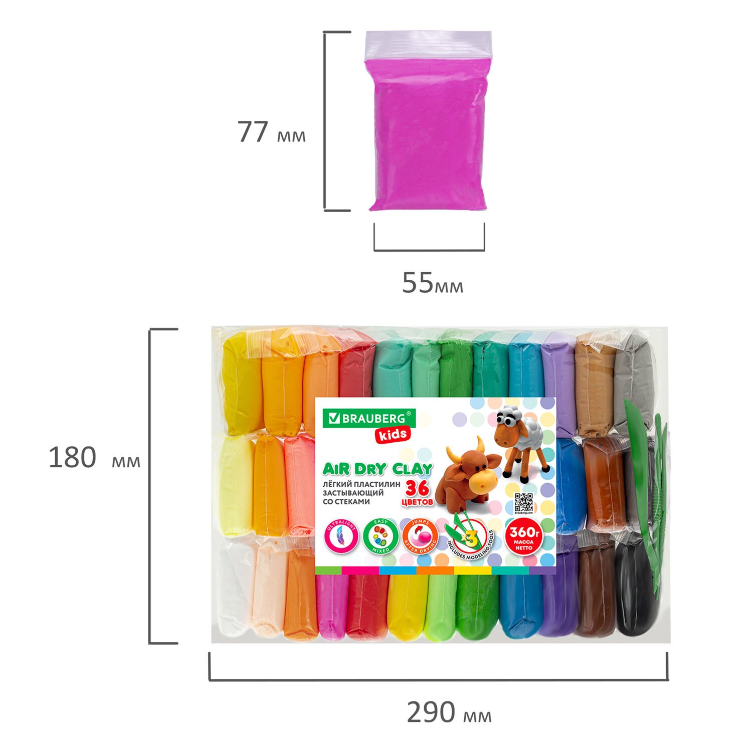 Пластилин супер лёгкий воздушный застывающий 36 цветов, 360 г, 3 стека, BRAUBERG KIDS, 106308