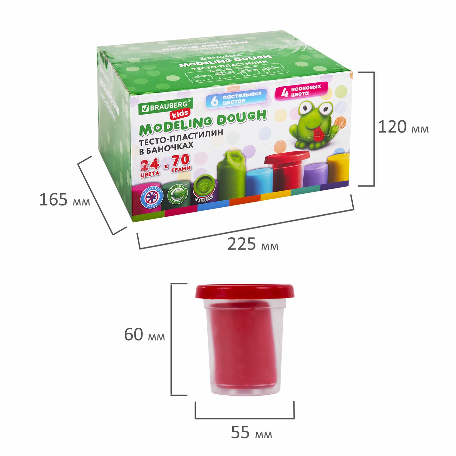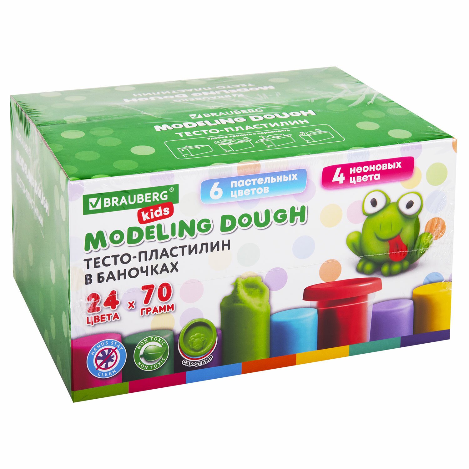 Пластилин-тесто для лепки BRAUBERG KIDS, 24 цвета, 1680 г, крышки-штампики, сундучок, 106722