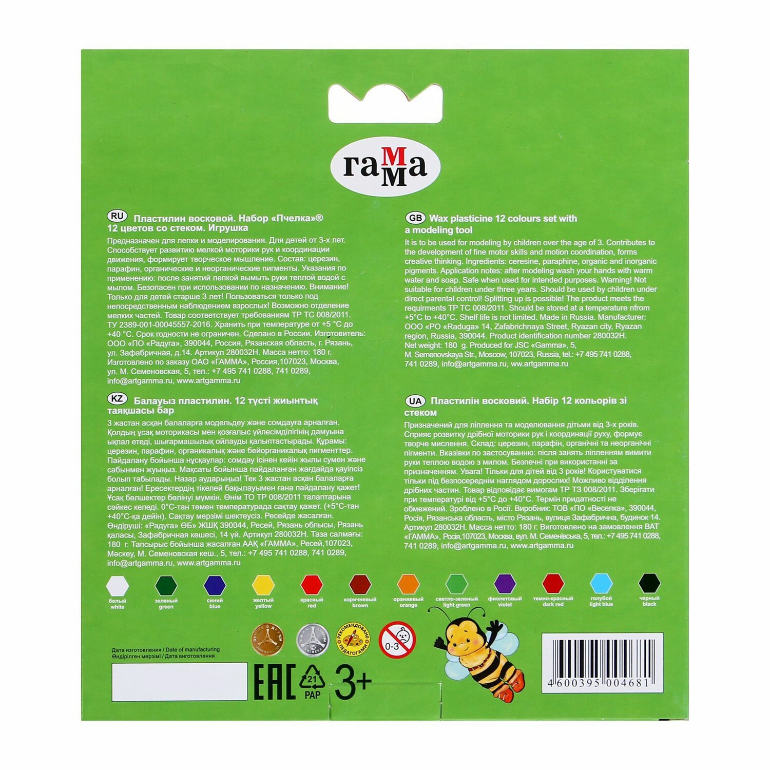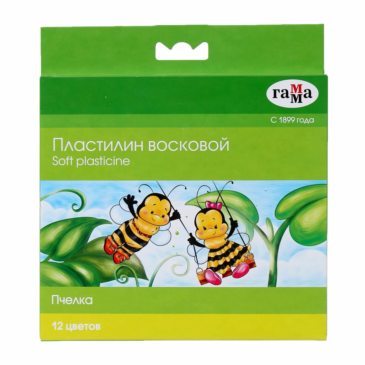 Пластилин восковой ГАММА "Пчелка", 12 цветов, 180 г, со стеком, картонная упаковка, 280032Н
