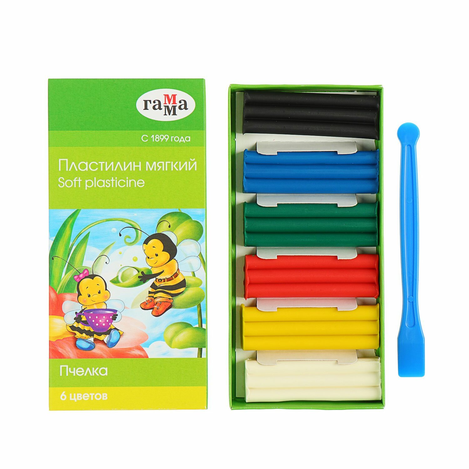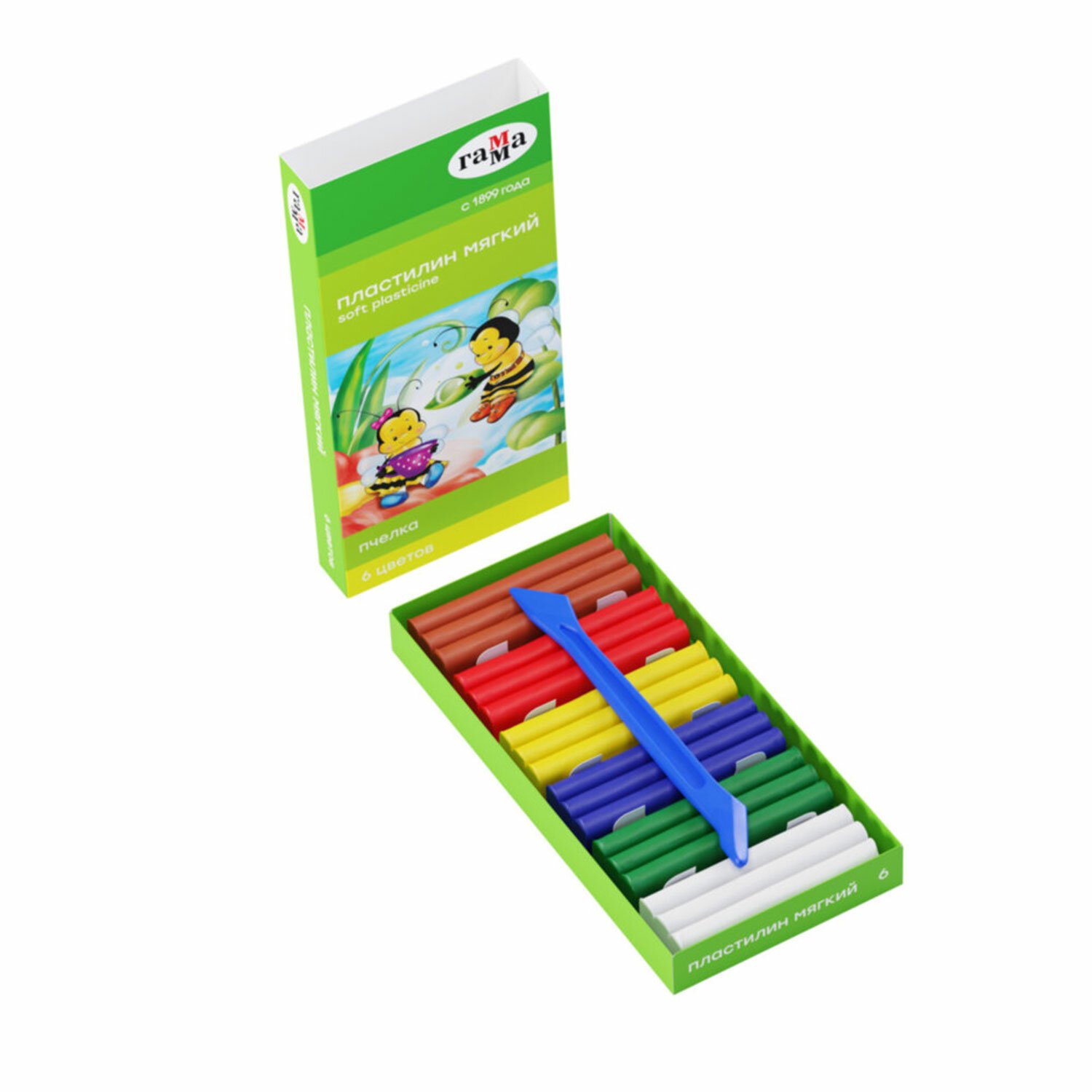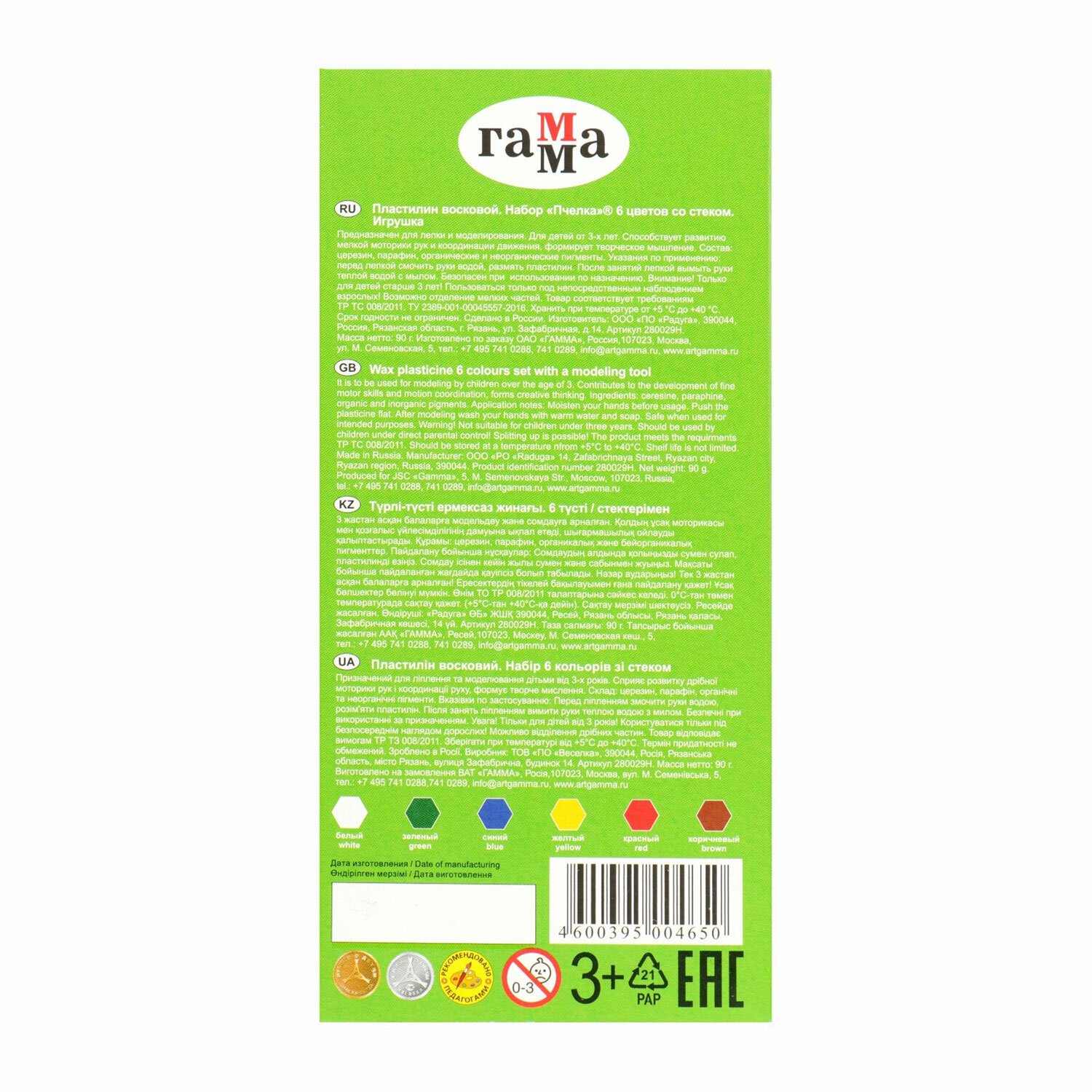Пластилин восковой ГАММА "Пчелка", 6 цветов, 90 г, со стеком, картонная упаковка, 280029Н