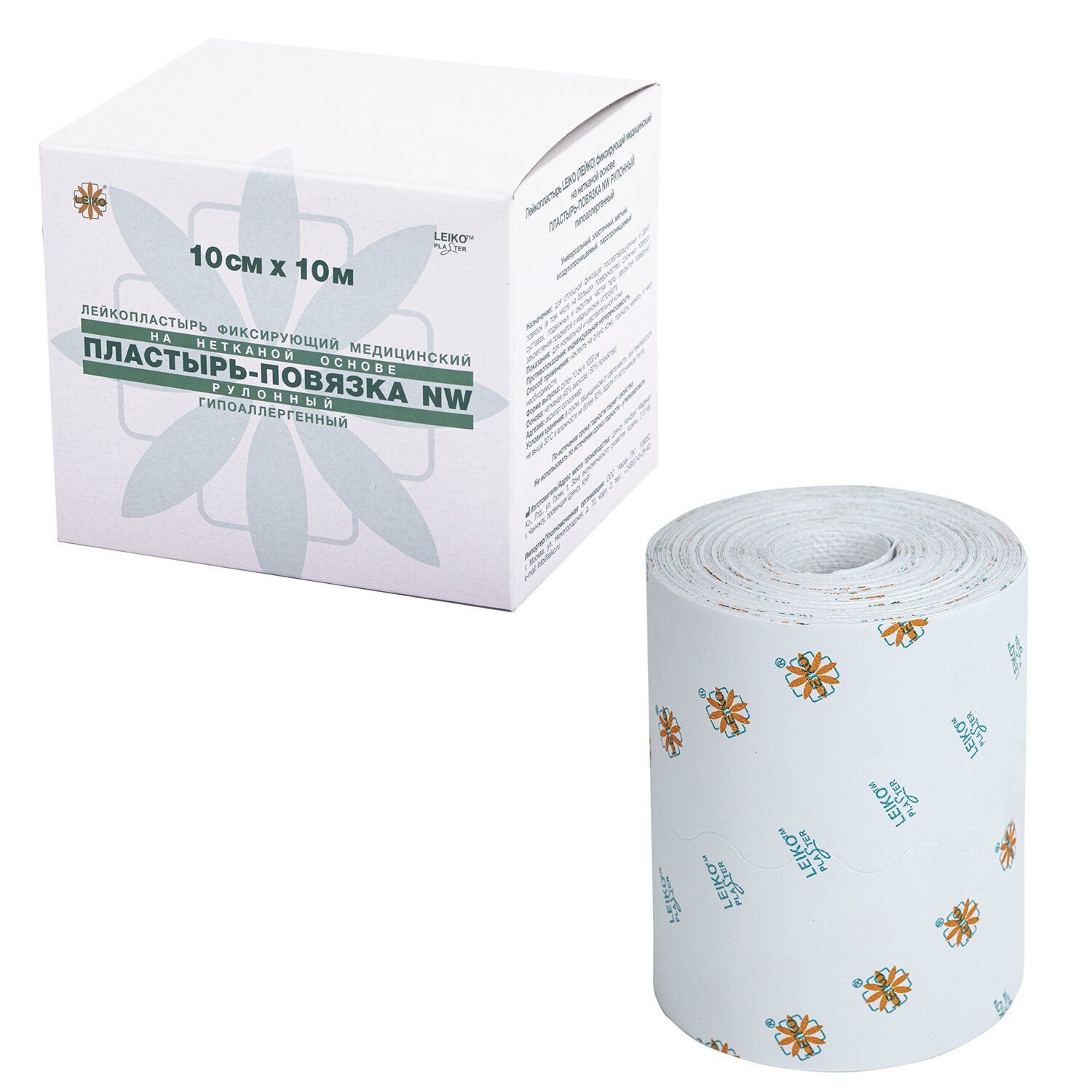 Пластырь-повязка рулонная LEIKO 10х1000 см, на нетканой основе "Липкий бинт", 132825