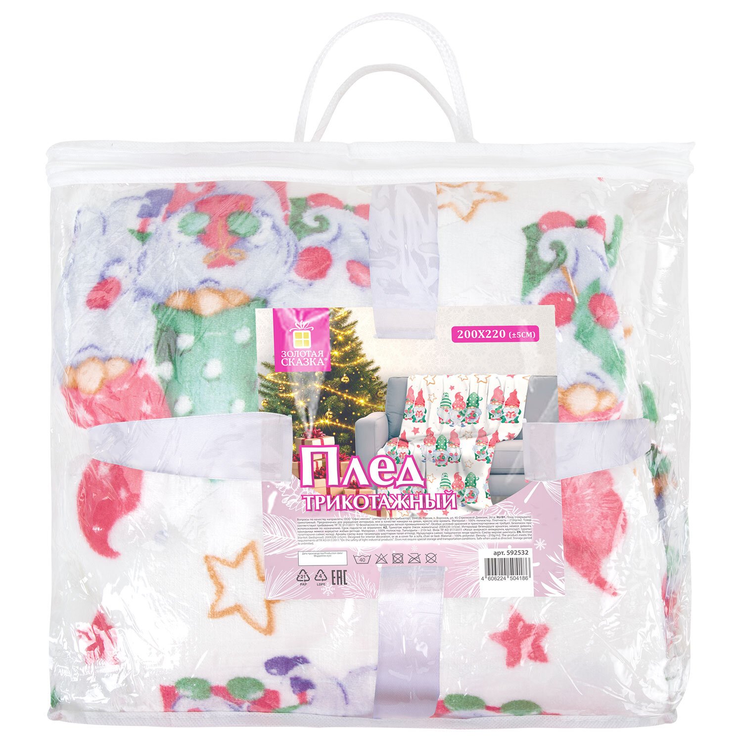 Плед новогодний 200х220см "Гномики", полиэстер, 210г/м2, ЗОЛОТАЯ СКАЗКА, 592532