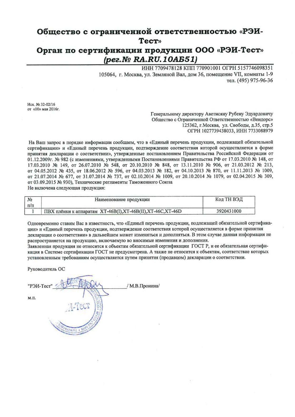 • сохранение гарантии производителя на аппараты при использовании данных пленок;