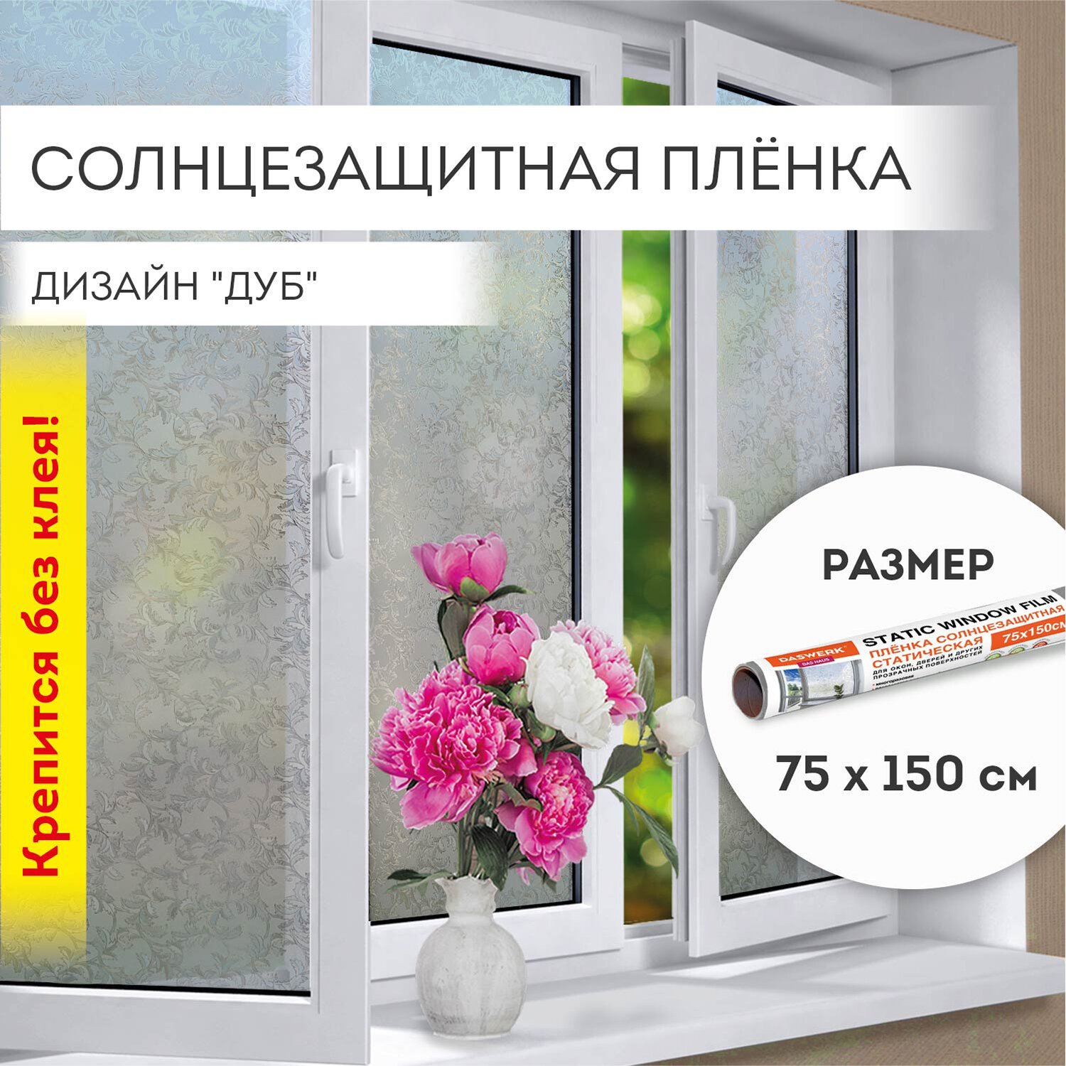 Пленка на окно самоклеящаяся статическая БЕЗ КЛЕЯ солнцезащитная 75х150 см "Одуван" DASWERK, 608583