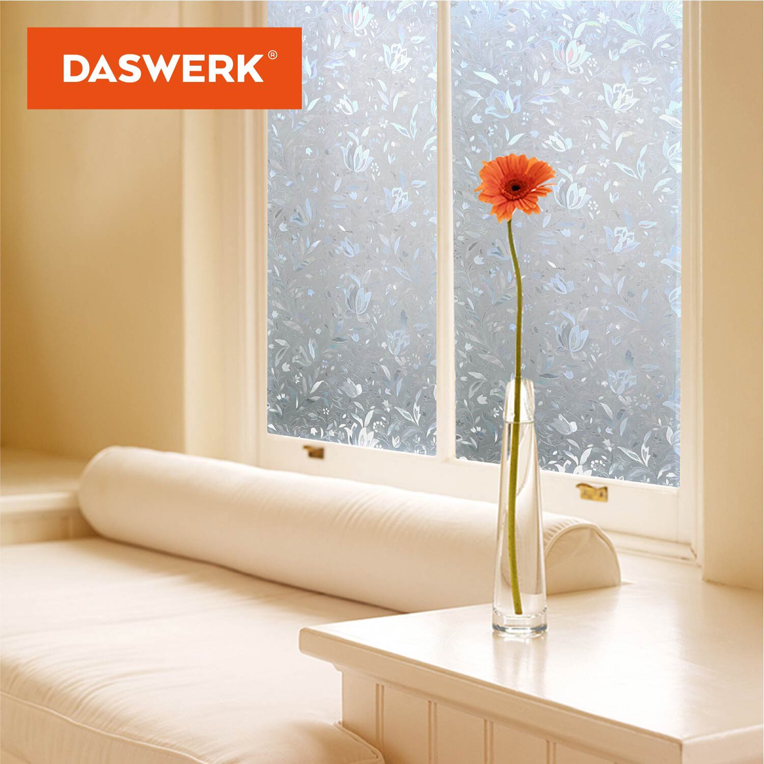 Пленка на окно DASWERK поставляется в рулоне шириной 75 см и длиной 1,5 м. Пленка подходит для установки на комнатные и балконные окна, стеклянные двери и перегородки, дверцы шкафов и полок, а также дверцы и перегородки душевых кабин. Оконная плёнка не затемняет помещение, пропуская 75% солнечного света и тепла. Отражая 75% ультрафиолетового излучения, плёнка защищает предметы мебели и интерьера от выгорания и потери внешнего вида. Лицевая поверхность обладает эффектом "радуги" – при попадании солнечных лучей на плёнку свет преломляется, превращая окно в яркий витраж, украшающий и подчёркивающий интерьер, а также защищающий от любопытных взглядов.