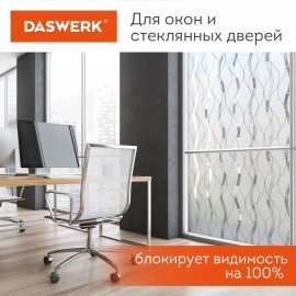 Плёнка на окно DASWERK поставляется в рулоне шириной 75 см и длиной 1,5 м. Плёнка подходит для установки на комнатные и балконные окна, стеклянные двери и перегородки, дверцы шкафов и полок, а также дверцы и перегородки душевых кабин. Оконная плёнка не затемняет помещение, пропуская 75% солнечного света и тепла. Отражая 75% ультрафиолетового излучения, плёнка защищает предметы мебели и интерьера от выгорания и потери внешнего вида. Лицевая поверхность имитирует матовое стекло, украшая и подчёркивая интерьер, а также защищая от любопытных взглядов.