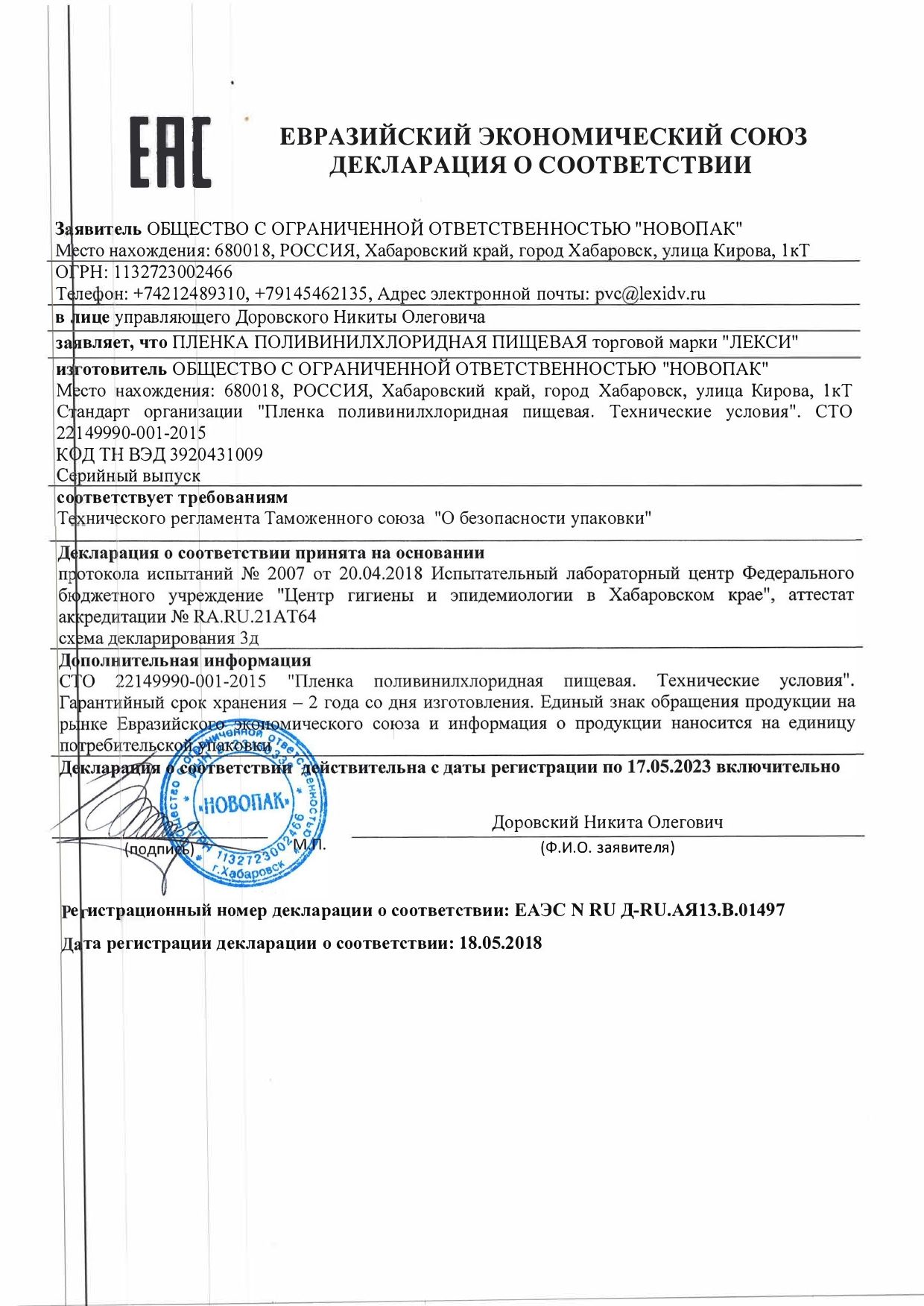 ПВХ пленка используется для упаковки продовольственных товаров. Способна пропускать наружу водяной пар и углекислый газ, а кислород внутрь, обеспечивая "дыхание" продуктов, поддержание микроклимата внутри упаковки, длительный срок годности.