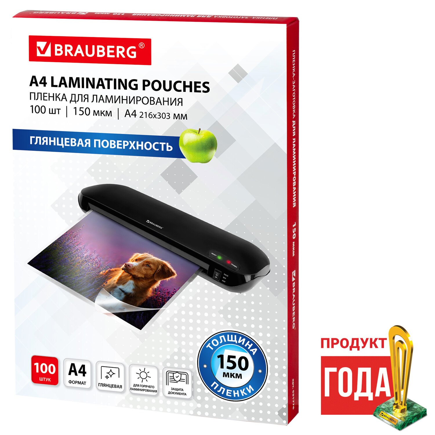 Пленки-заготовки для ламинирования А4, КОМПЛЕКТ 100 шт., 150 мкм, BRAUBERG, 531776