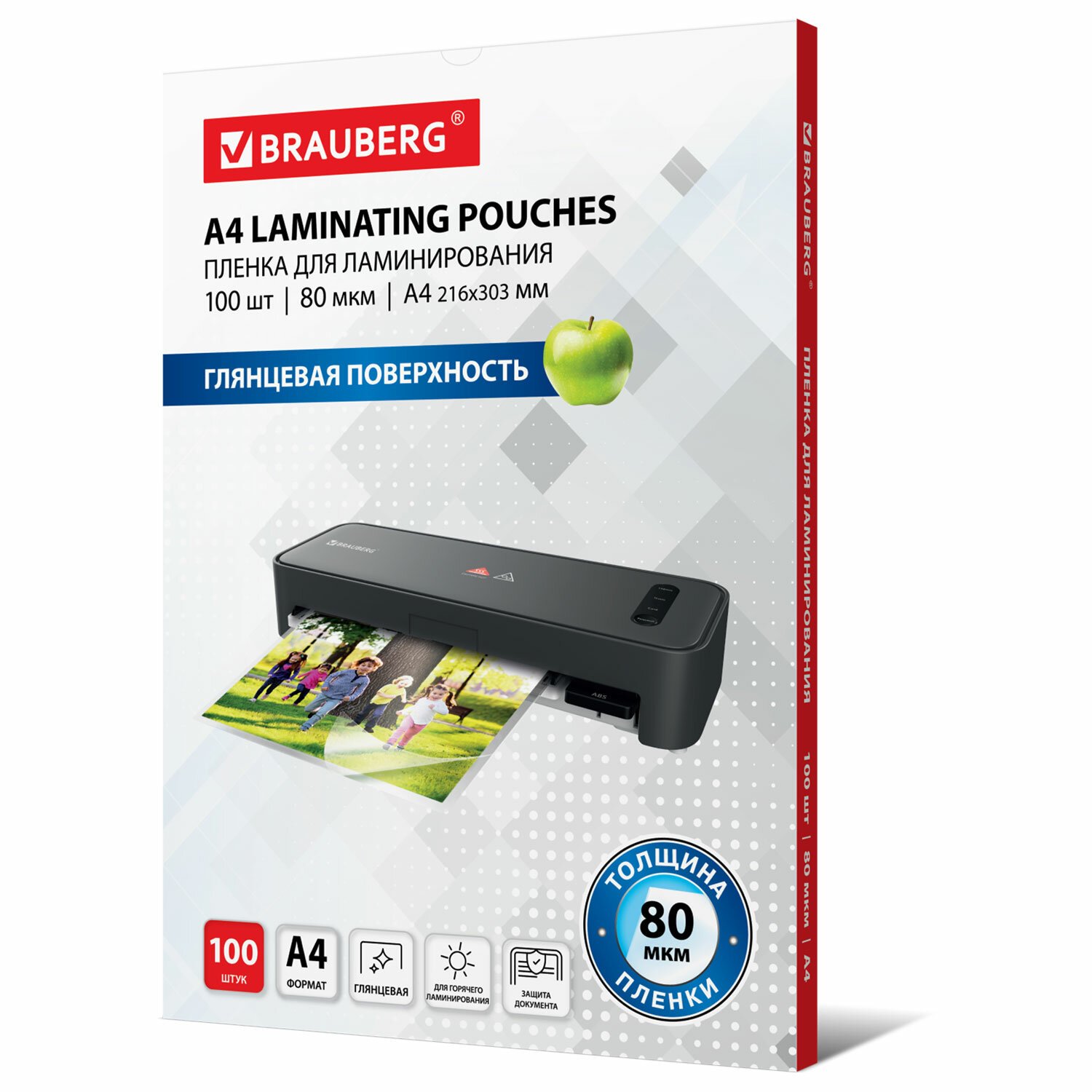 Пленки-заготовки для ламинирования А4, КОМПЛЕКТ 100 шт., 80 мкм, BRAUBERG, 531775