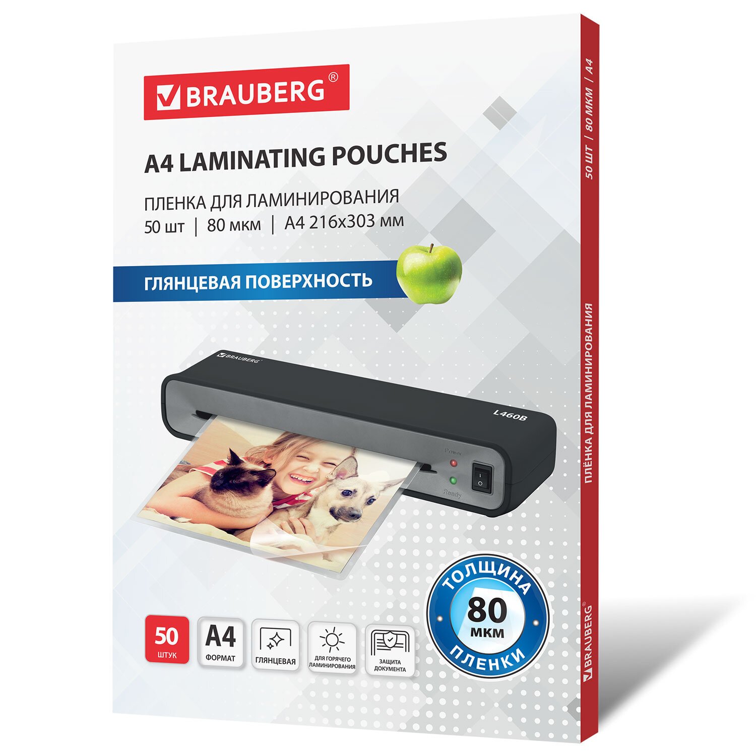Пленки-заготовки для ламинирования А4, КОМПЛЕКТ 50 шт., 80 мкм, BRAUBERG, 533113