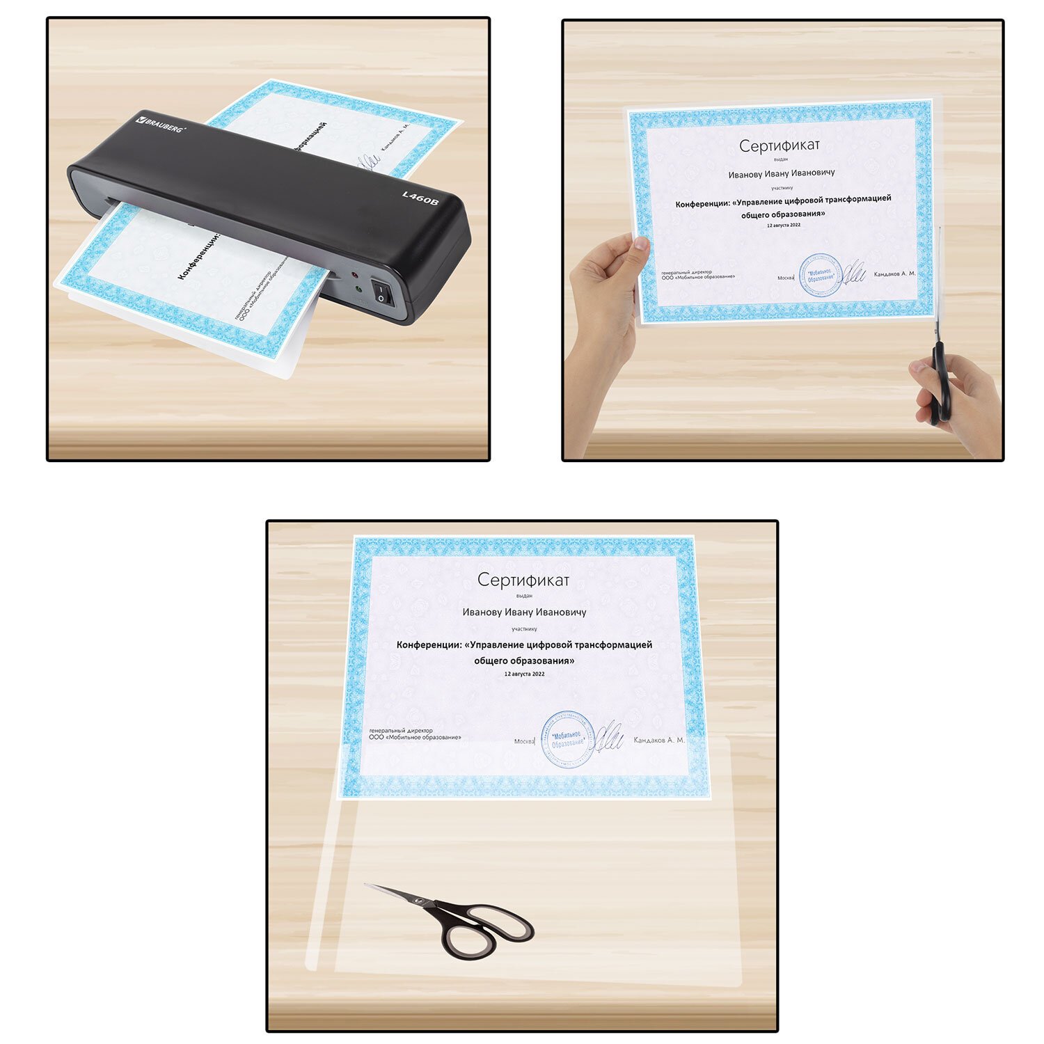 Пленки-заготовки для ламинирования А4, КОМПЛЕКТ 100 шт., 100 мкм, BRAUBERG, 530801