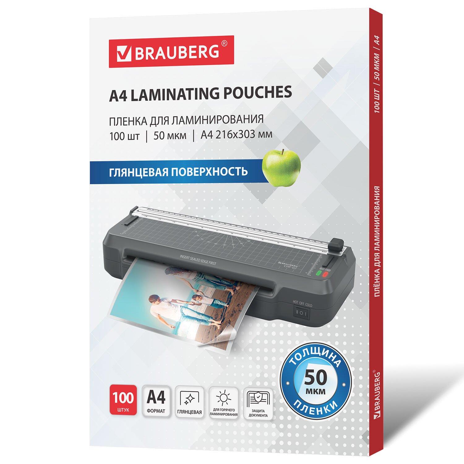 Пленки-заготовки для ламинирования А4, КОМПЛЕКТ 50 шт., 100 мкм, BRAUBERG, 533114