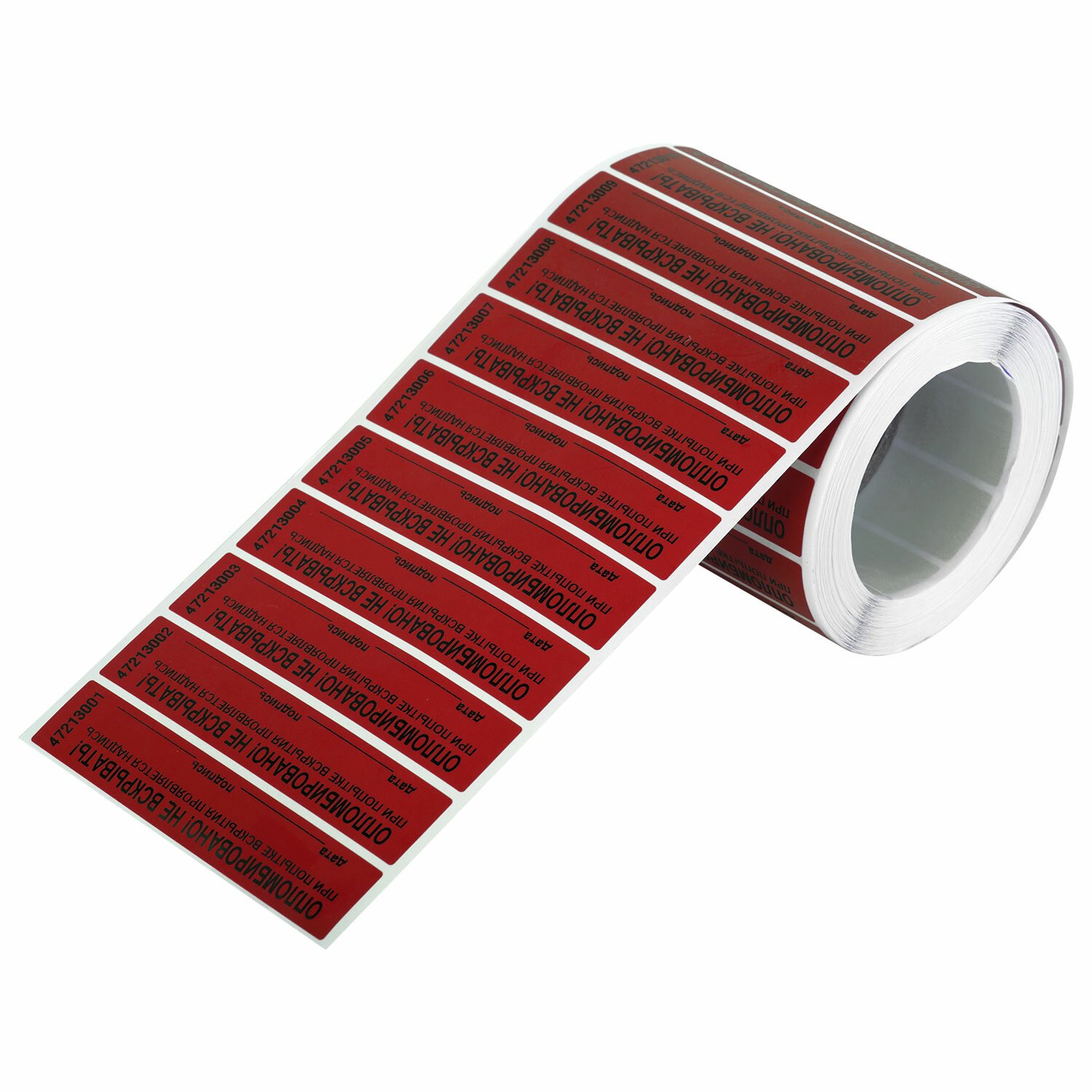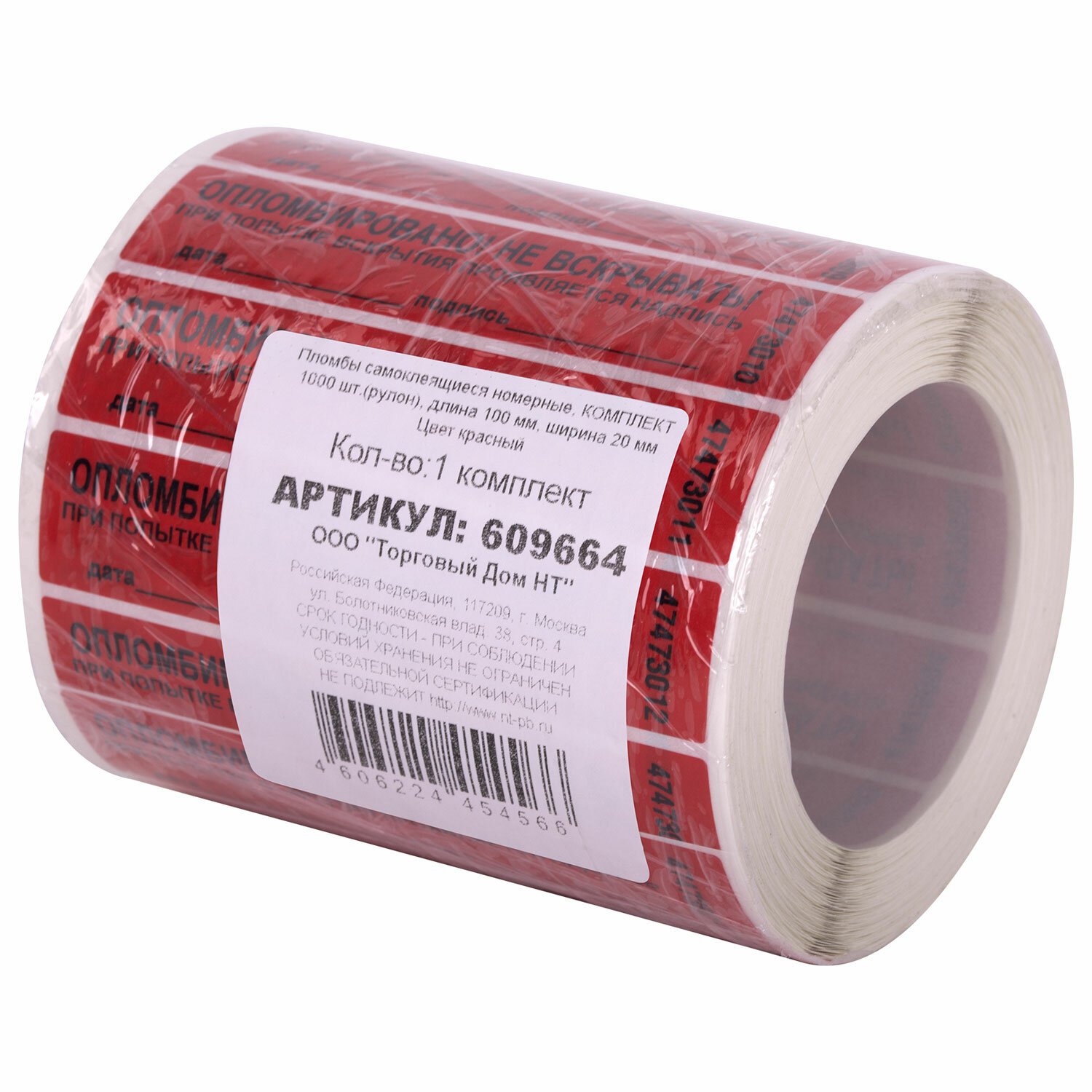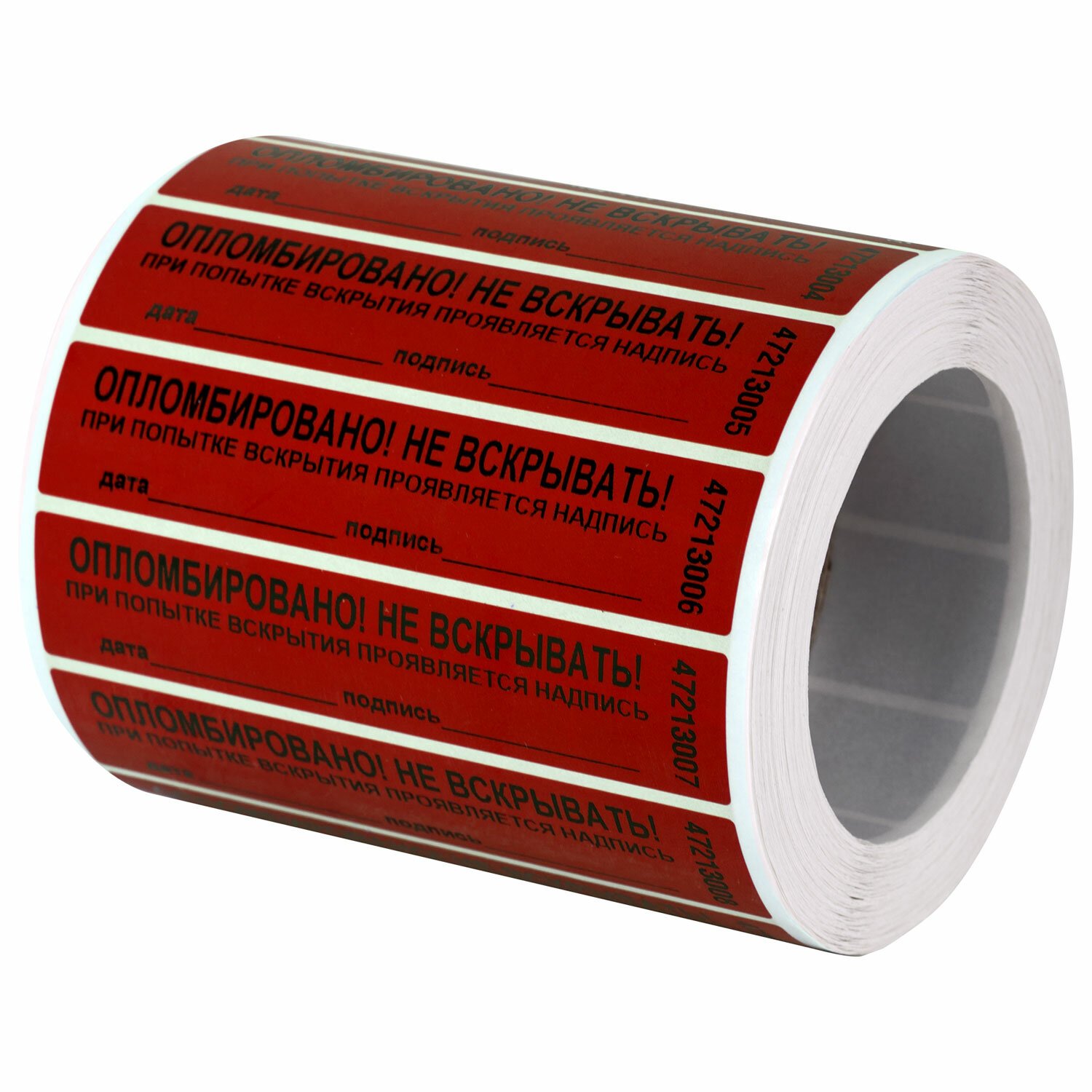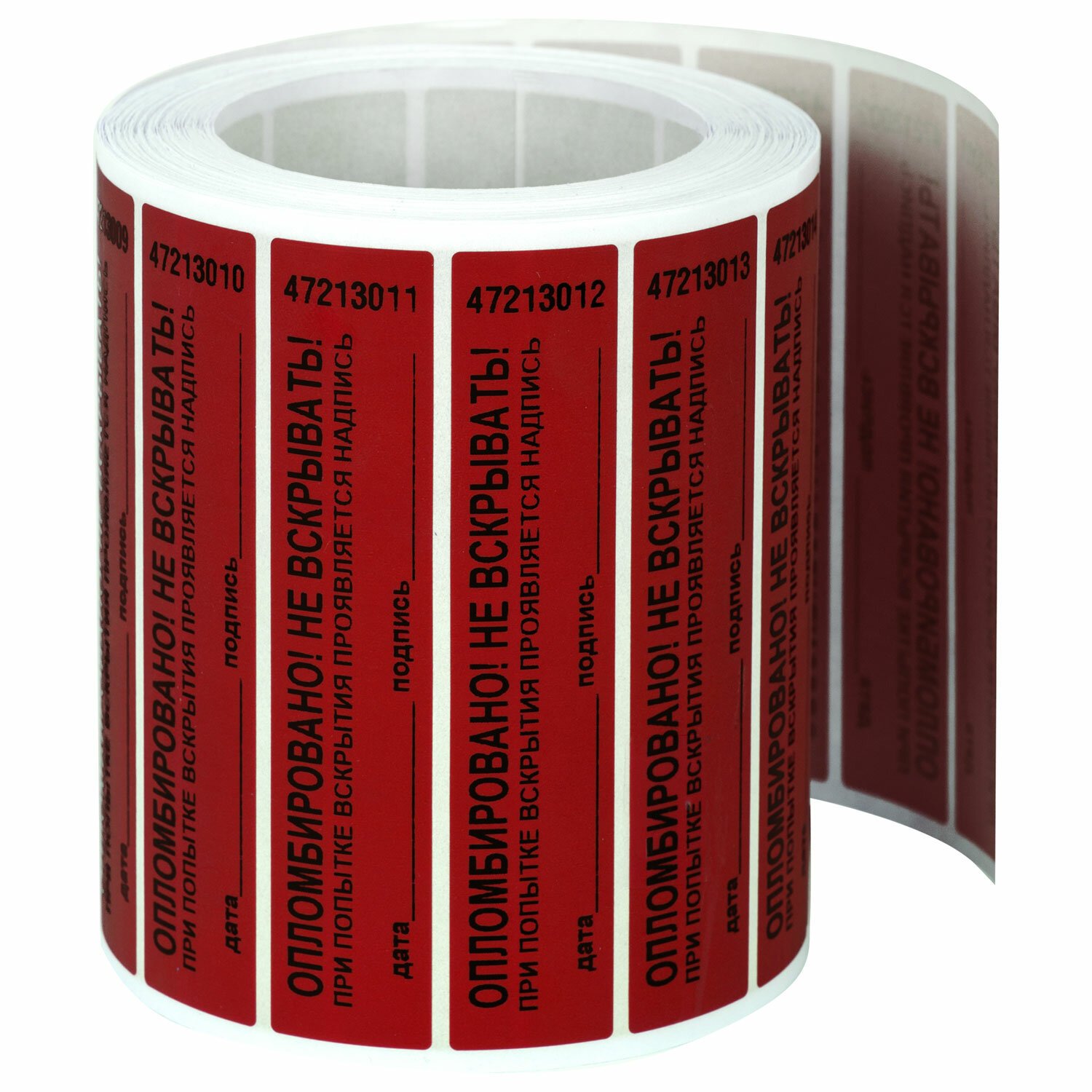 Пломбы самоклеящиеся номерные, КОМПЛЕКТ 1000 шт. (рулон), длина 100 мм, ширина 20 мм, КРАСНЫЕ