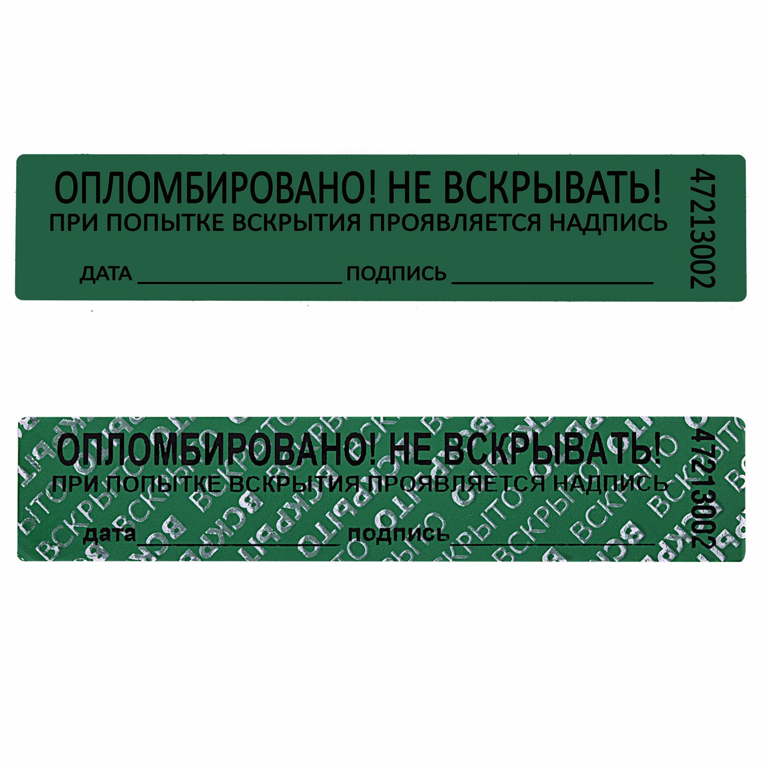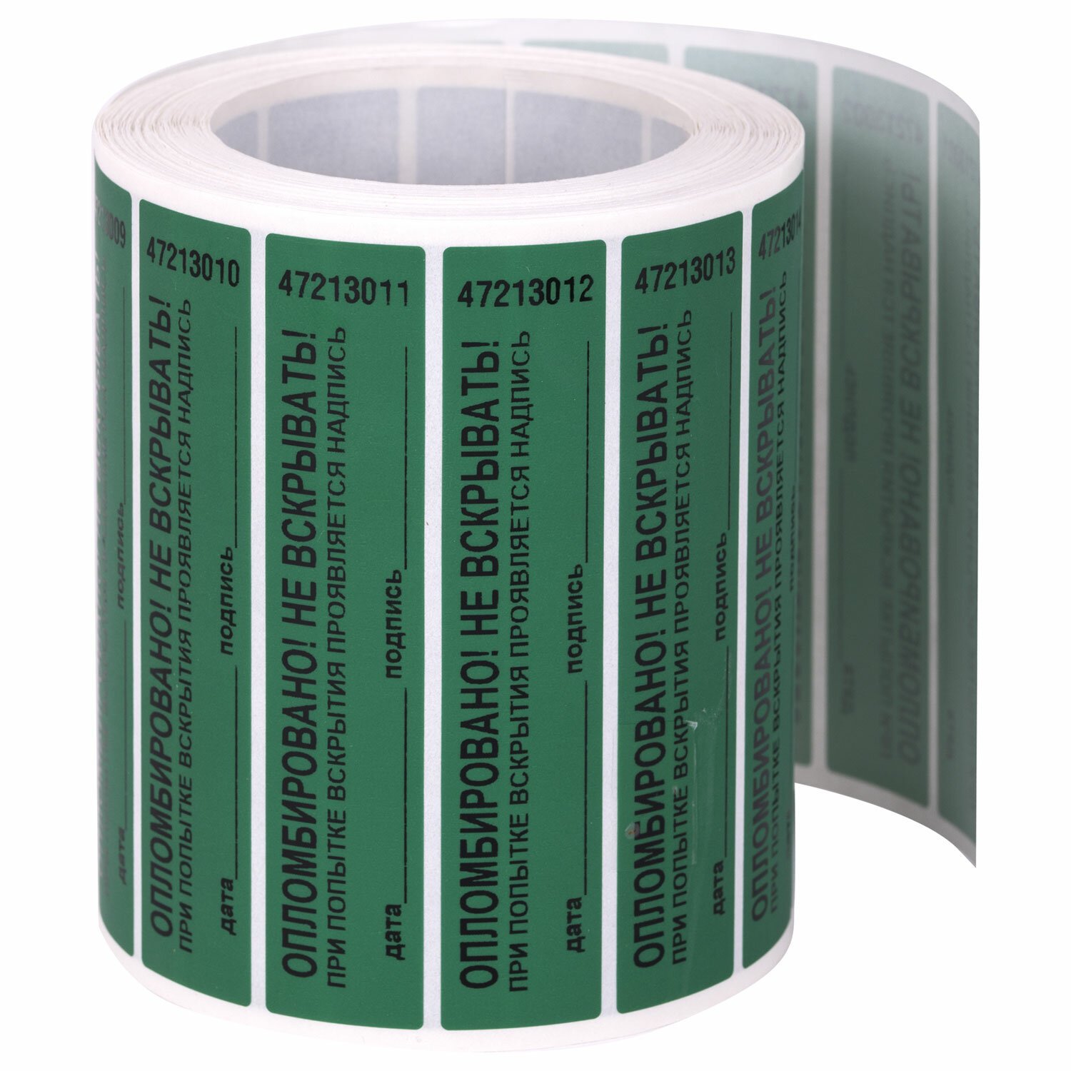 Пломбы самоклеящиеся номерные, КОМПЛЕКТ 1000 шт. (рулон), длина 100 мм, ширина 20 мм, ЗЕЛЕНЫЕ