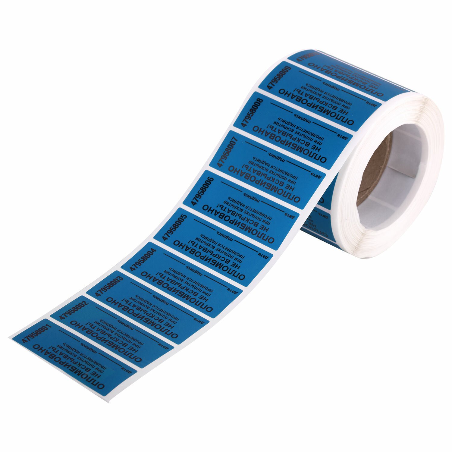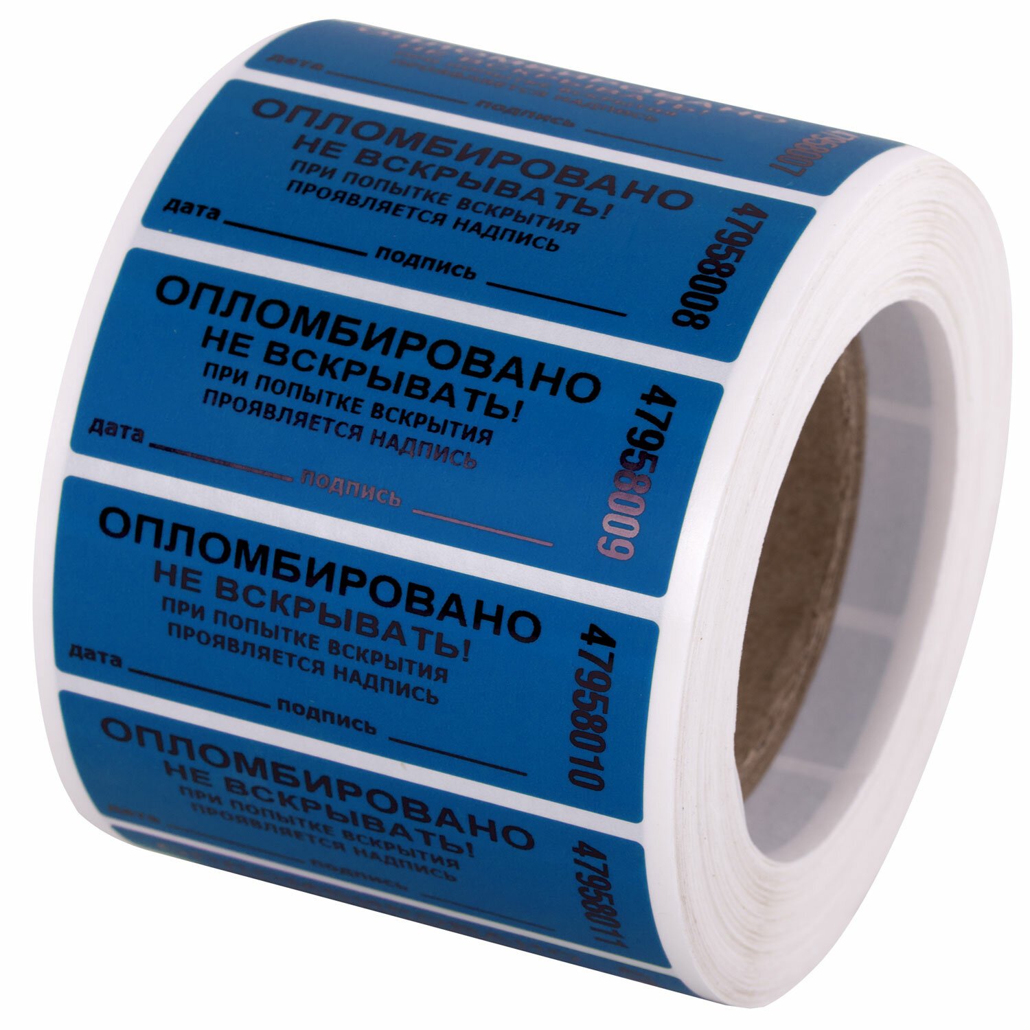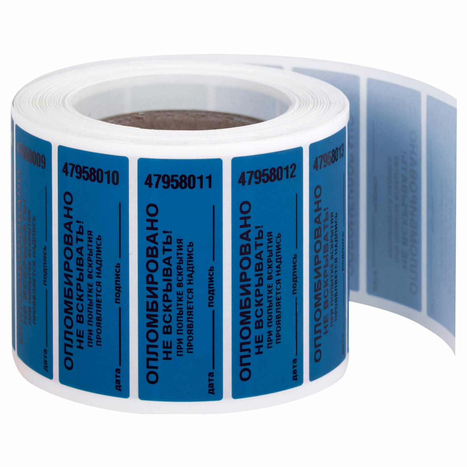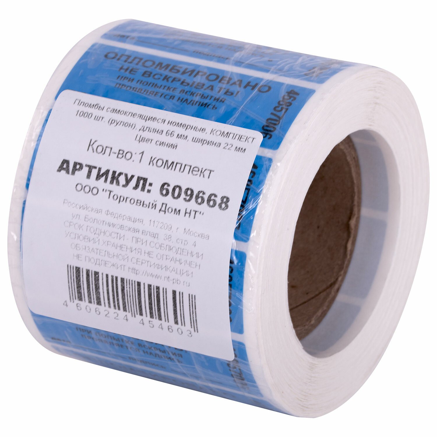Пломбы самоклеящиеся номерные, КОМПЛЕКТ 1000 шт. (рулон), длина 66 мм, ширина 22 мм, СИНИЕ