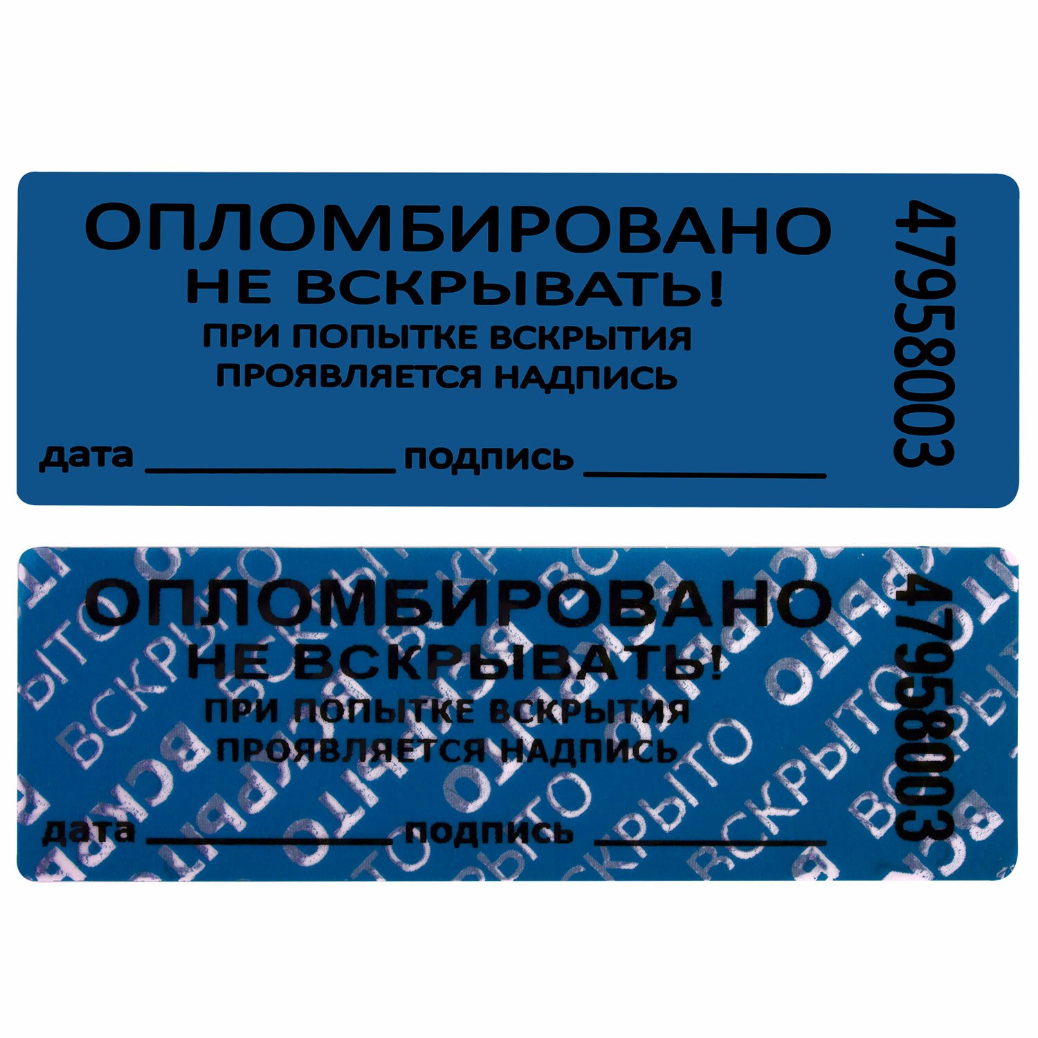 Пломбы самоклеящиеся номерные, КОМПЛЕКТ 1000 шт. (рулон), длина 100 мм, ширина 20 мм, СИНИЕ