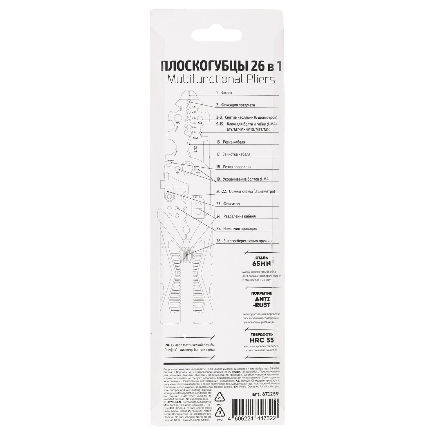 Плоскогубцы многофункциональные 26 в 1, 215мм, марганцевая сталь 65Mn, ГРАНДМАСТЕР, PL-215, 671259