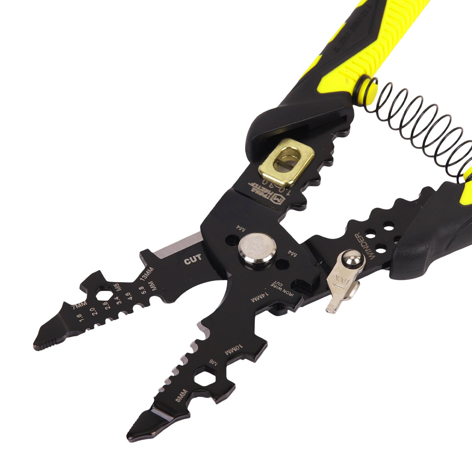 В верхней части плоскогубцы оснащены специальными выемками разного размера, которые заменяют несколько рожковых ключей. С их помощью можно закручивать и откручивать болты и гайки разных диаметров: M4 / M5 / M7 / M8 / M10 / M13 / M14.