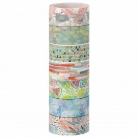 Клейкая WASHI-лента для декора, 15 мм х 5 м, ассорти, в дисплее, рисовая бумага, ОСТРОВ СОКРОВИЩ, 661719