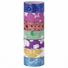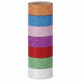 Клейкие ленты полимерные для декора с блестками "ПАСТЕЛЬ", 15 мм х 3 м, 7 цветов, ОСТРОВ СОКРОВИЩ, 661716