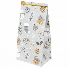 Пакет подарочный КОМПЛЕКТ 10 штук новогодний 12х8х25 см с зажимами, "Паттерн № 2", ЗОЛОТАЯ СКАЗКА, 592123