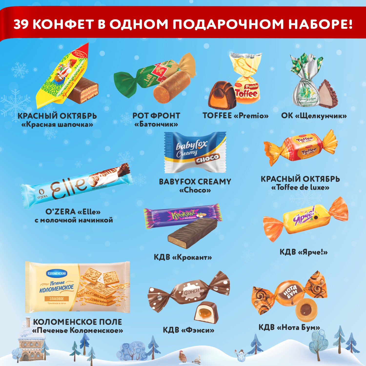 Новогодний подарок СЛАДКОЕЖКА" МОСУПАК – это сладости в жестяной упаковке с новогодним дизайном. Упаковка имеет удобную ручку для переноски. 600 г вкуснейших кондитерских изделий популярных торговых марок обязательно придутся по вкусу всем сладкоежкам!